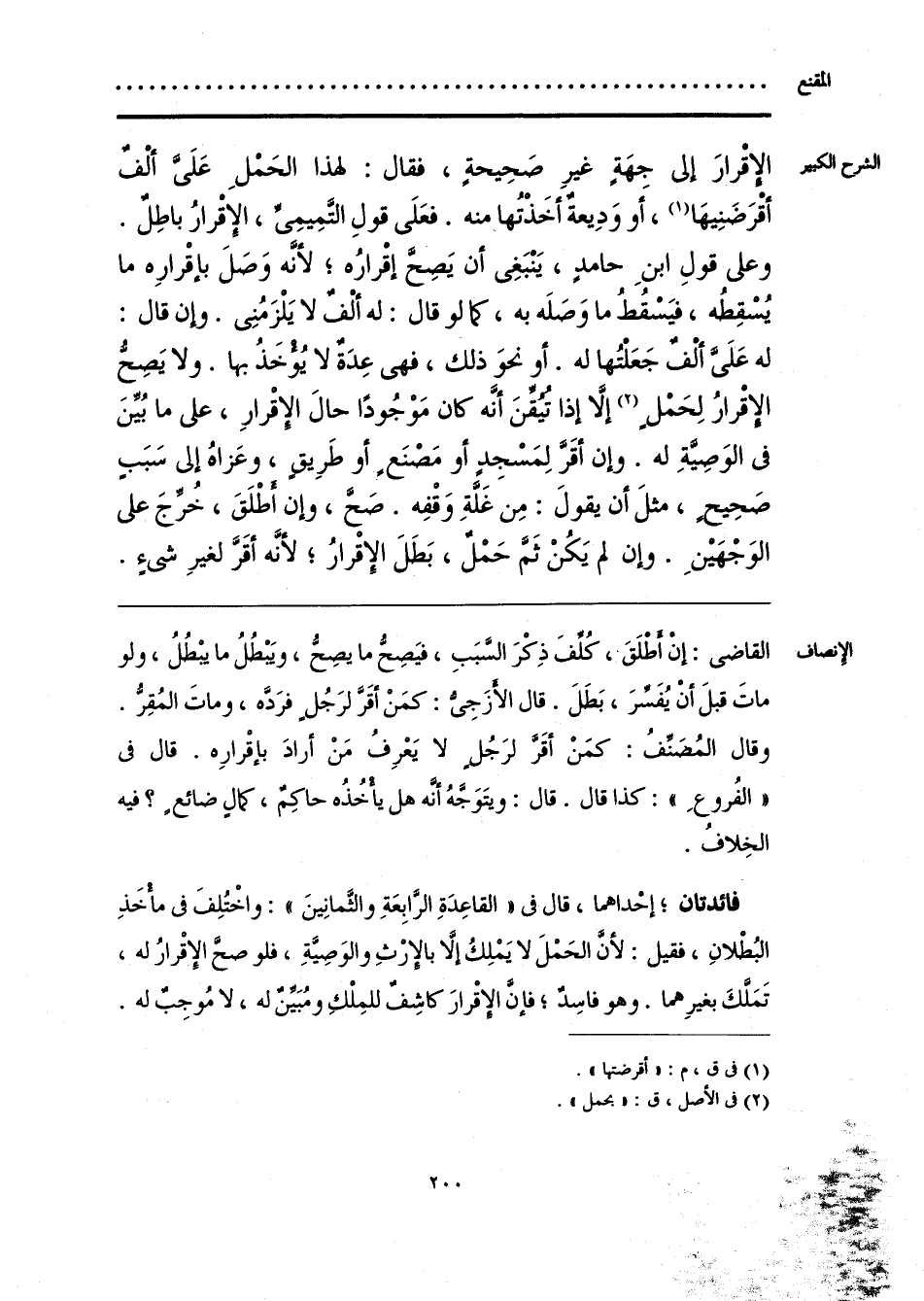 فائدتان؛ إحْداهما، قال فى «القاعِدَةِ الرَّابِعَةِ والثَّمانِينَ»: واخْتُلِفَ فى مأْخَذِ البُطْلانِ، فقيل: لأَنَّ الحَمْلَ لا يَمْلِكُ إلا بالإرْثِ والوَصِيةِ، فلو صحَّ الإِقْرارُ له، تَمَلَّكَ بغيرِهما. وهو فاسِدٌ؛ فإنَّ الإِقْرارَ كاشِفٌ للمِلْكِ ومُبَينٌ له، لا مُوجِبٌ له.
