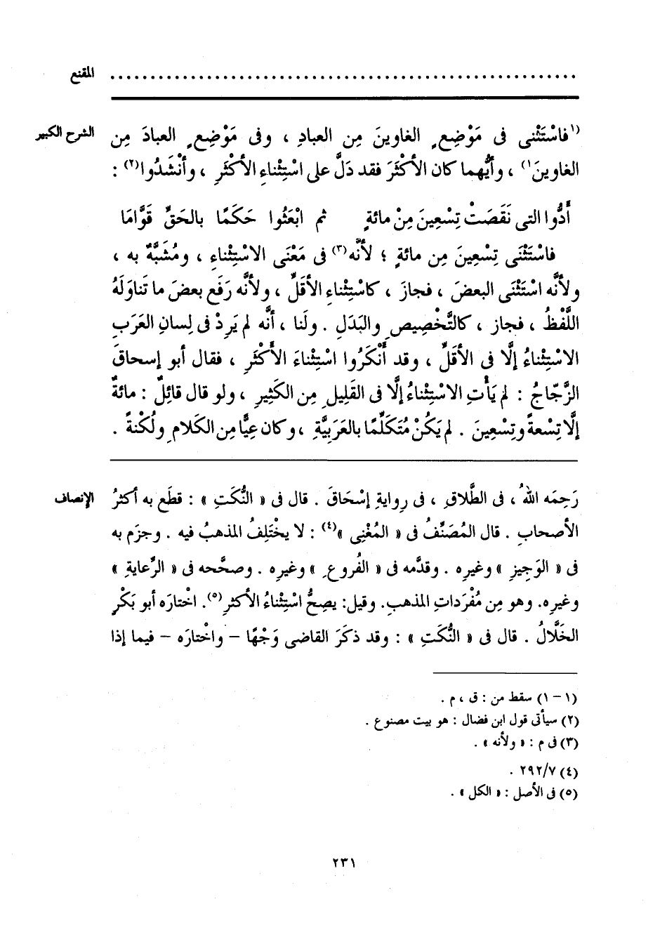 رَحِمَه اللَّهُ، فى الطَّلاقِ، فى رِوايةِ إسْحَاقَ. قال فى «النُّكَتِ»: قطَع به أكثرُ الأصحابِ. قال المُصَنِّفُ فى «المُغْنِى» (¬1): لا يخْتَلِفُ المذهبُ فيه. وجزَم به فى «الوَجِيزِ» وغيرِه. وقدَّمه فى «الفُروعِ» وغيرِه. وصحَّحه فى «الرِّعايةِ» وغيرِه. وهو مِن مُفْرَداتِ المذهبِ. وقيل: يصِحُّ اسْتِثْناءُ الأكثرِ (¬2). اخْتارَه أبو بَكْرٍ الخَلَّالُ. قال فى «النُّكَتِ»: وقد ذكَرَ القاضى وَجْهًا -واخْتارَه- فيما إذا