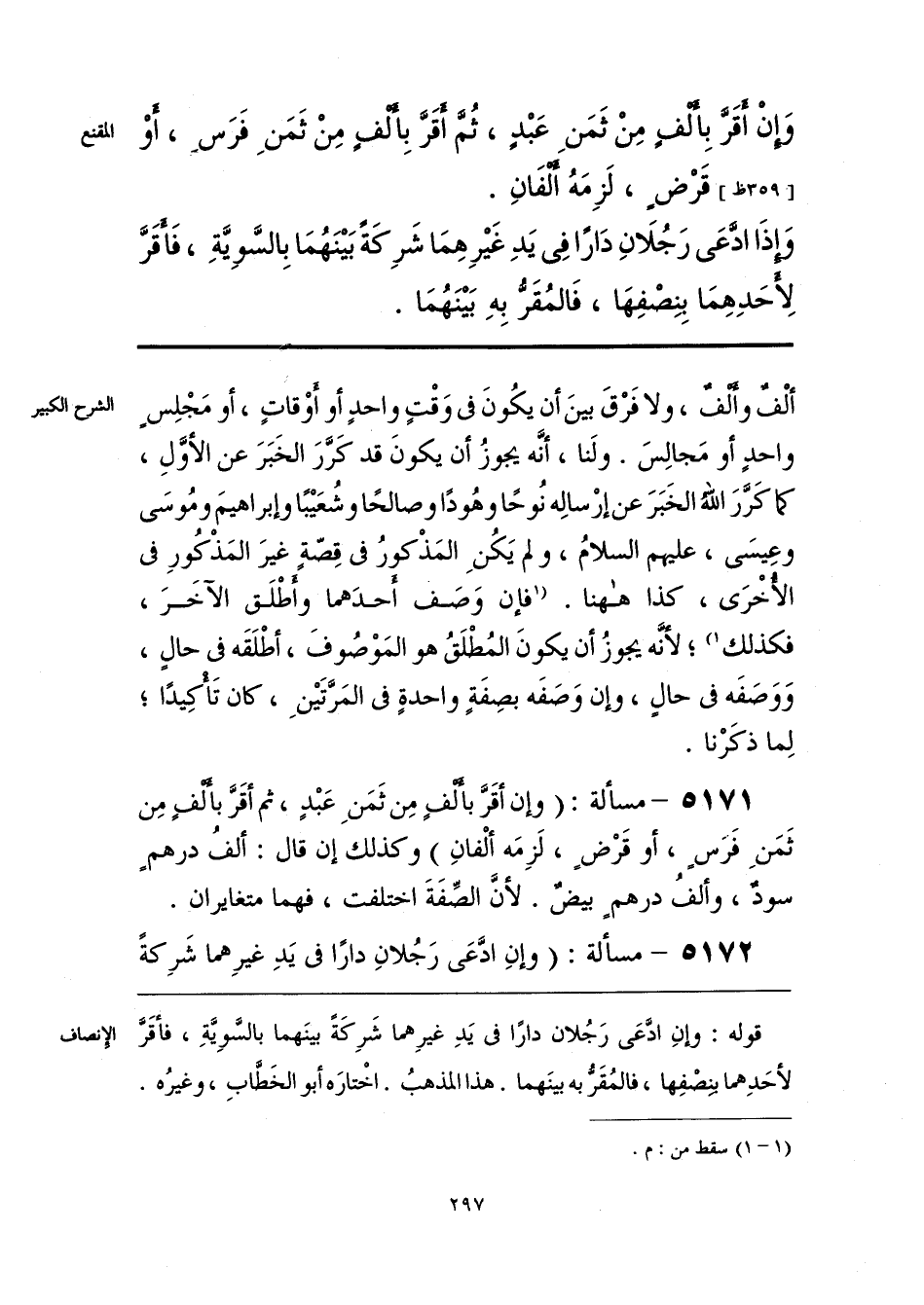 قوله: وإنِ ادَّعَى رَجُلان دارًا فى يَدِ غيرِهما شَرِكَةً بينَهما بالسَّوِيَّةِ، فأقَرَّ لأحَدِهما بنِصْفِها، فالمُقَرُّ به بينَهما. هذا المذهبُ. اخْتارَه أبو الخَطَّابِ، وغيرُه.