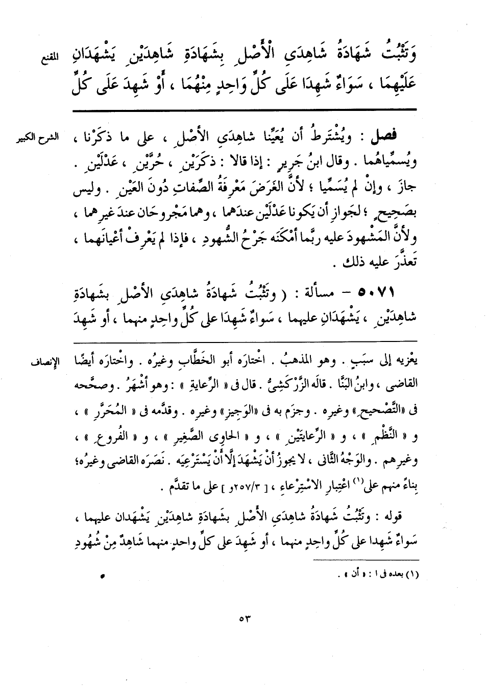 وَتَثْبُتُ شَهَادَةُ شَاهِدَىِ الأَصْلِ بِشَهَادَةِ شَاهِدَيْنِ يَشْهَدَانِ عَلَيْهِمَا، سَوَاءٌ شَهِدَا عَلَى كُلِّ وَاحِدٍ مِنْهُمَا، أوْ شَهِدَ عَلَى كُلِّ