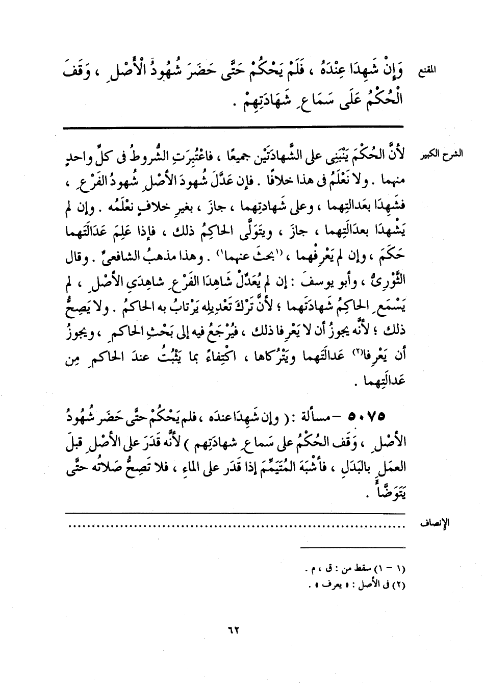 وَإنْ شَهِدَا عِنْدَهُ، فَلَمْ يَحْكُمْ حَتَّى حَضَرَ شُهُودُ الأصْلِ، وَقَفَ الْحُكْمُ عَلَى سَمَاعِ شَهَادَتِهِمْ.
