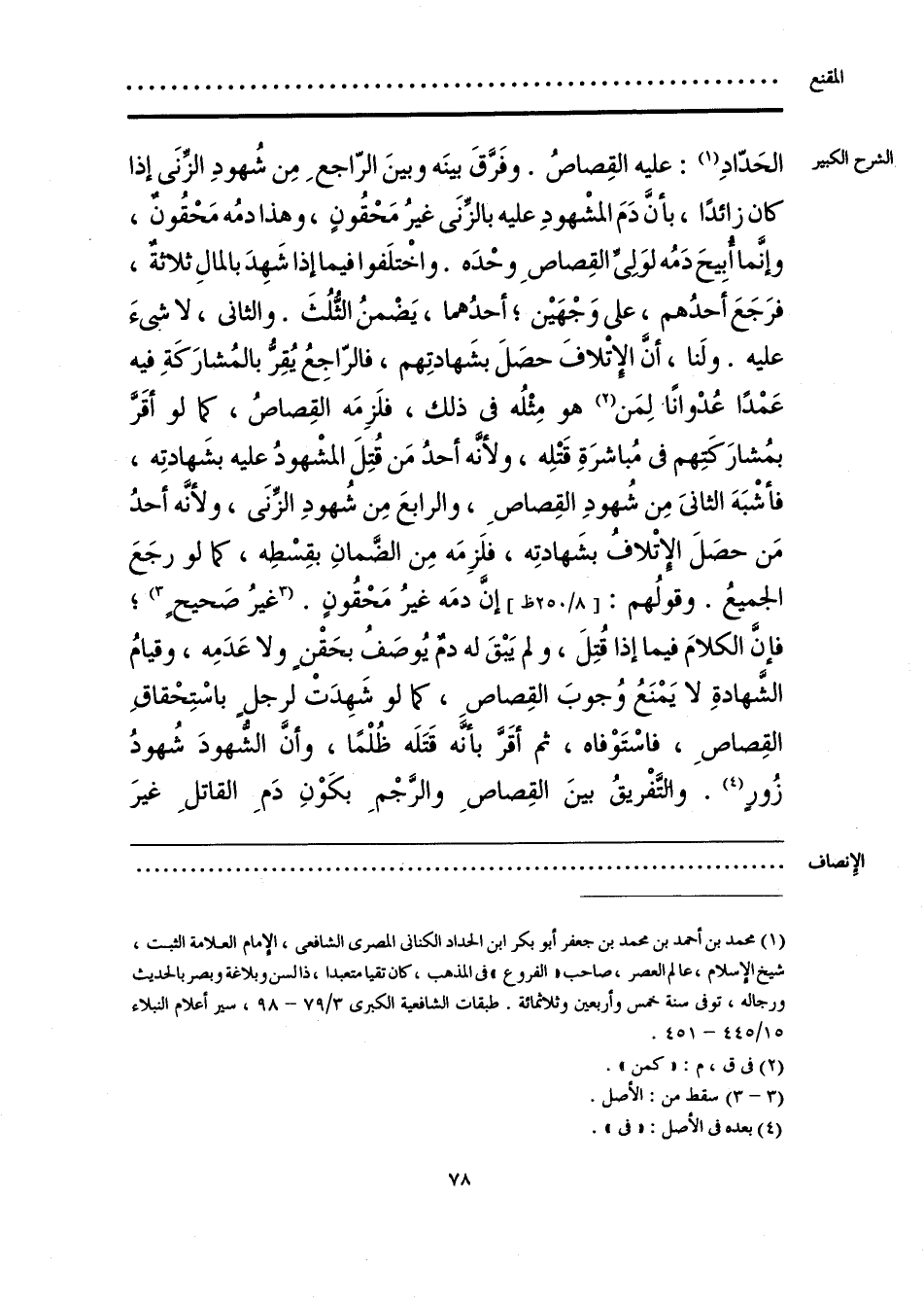 الحَدّادِ (¬1): عليه القِصاصُ. وفَرَّقَ بينَه وبينَ الرّاجعِ مِن شُهودِ الزِّنَى إذا كان زائدًا، بأنَّ دَمَ المشْهودِ عليه بالزِّنَى غيرُ مَحْقُونٍ، وهذا دمُه مَحْقُونٌ، وإنَّما أُبِيحَ دَمُه لوَلِىِّ القِصاصِ وحْدَه. واخْتلَفوا فيما إذا شَهِدَ بالمالِ ثلاثةٌ، فرَجَعَ أحدُهم، على وَجْهَيْن؛ أحدُهما، يَضْمنُ الثُّلُثَ. والثانى، لا شئَ عليه. ولَنا، أنَّ الإتْلافَ حصَلَ بشَهادتِهم، فالرّاجِعُ يُقِرُّ بالمُشارَكَةِ فيه عَمْدًا عُدْوانًا لِمَن (¬2) هو مِثْلُه في ذلك، فلَزِمَه القِصاصُ، كما لو أقَرَّ بمُشارَكَتِهم في مُباشرَةِ قَتْلِه، ولأنَّه أحدُ مَن قُتِلَ المشْهودُ عليه بشَهادتِه، فأشْبَهَ الثانَى مِن شُهودِ القِصاصِ، والرابعَ مِن شُهودِ الزِّنَى، ولأنَّه أحدُ مَن حصَلَ الإتْلافُ بشَهادتِه، فلَزِمَه مِن الضَّمانِ بقِسْطِه، كما لو رجَعَ الجميعُ. وقولُهم: إنَّ دمَه غيرُ مَحْقُونٍ. [غيرُ صَحيحٍ] (¬3)؛ فإنَّ الكلامَ فيما إذا قُتِلَ، ولم يَبْقَ له دمٌ يُوصَفُ بحَقْنٍ ولا عَدَمِه، وقيامُ الشَّهادةِ لا يَمْنَعُ وُجوبَ القِصاصِ، كما لو شَهِدَت لرجلٍ باسْتِحْقاقِ القِصاصِ، فاسْتَوْفاه، ثم أقَرَّ بأنَّه قَتَلَه ظُلْمًا، وأنَّ الشُّهودَ شُهودُ زُورٍ (¬4). والتَّفْريقُ بينَ القِصاصِ والرَّجْمِ بكَوْنِ دَمِ القاتلِ غيرَ