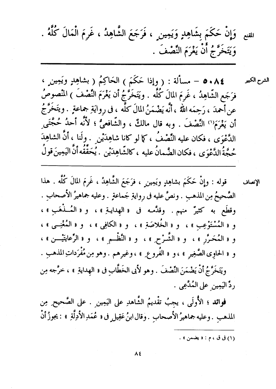 فوائد؛ الأُولَى، يجِبُ تقْديمُ الشَّاهدِ على اليَمِينِ. على الصَّحيحِ مِن المذهبِ. وعليه جماهيرُ الأصحابِ. وقال ابنُ عَقِيلٍ فى «عُمَدِ الأدِلَّةِ»: يجوزُ أنْ