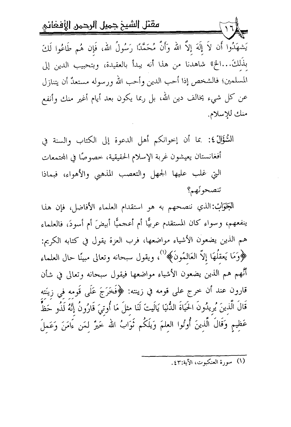 السؤال4: بما أن إخوانكم أهل الدعوة إلى الكتاب والسنة في أفغانستان يعيشون غربة الإسلام الحقيقية، خصوصًا في المجتمعات التي غلب عليها الجهل والتعصب المذهبي والأهواء، فبماذا تنصحونهم؟