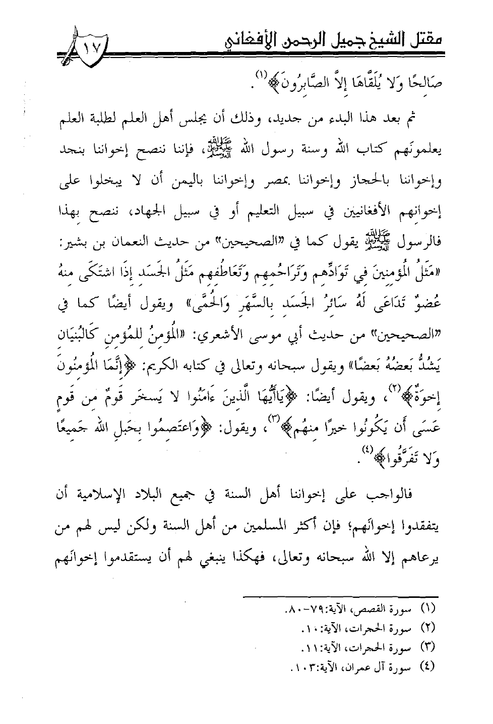 (¬4) سورة آل عمران، الآية:103.
