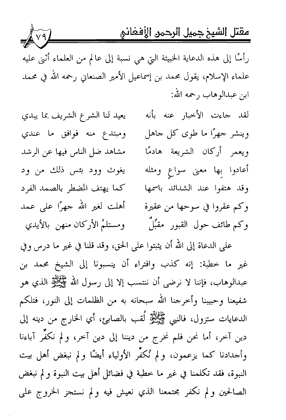 رأسًا إلى هذه الدعاية الخبيثة التي هي نسبة إلى عالم من العلماء أثنى عليه علماء الإسلام، يقول: محمد بن إسماعيل الأمير الصنعاني رحمه الله في محمد ابن عبد الوهاب رحمه الله:-