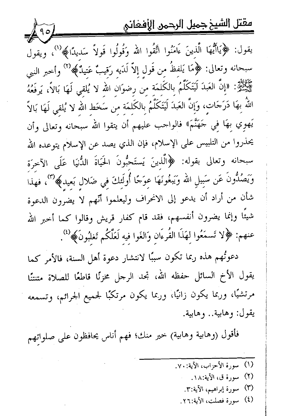 يقول: {ياأيّها الّذين ءامنوا اتّقوا الله وقولوا قولاً سديدًا (¬1)}، ويقول سبحانه وتعالى: {ما يلفظ من قول إلاّ لديه رقيب عتيد (¬2)} وأخبر النبي صلى الله عليه وعلى آله وسلم: ((إنّ العبد ليتكلّم بالكلمة من رضوان الله لا يلقي لها بالاً، يرفعه الله بها درجات، وإنّ العبد ليتكلّم بالكلمة من سخط الله لا يلقي لها بالاً يهوي بها في جهنّم)) فالواجب عليهم أن يتقوا الله سبحانه وتعالى وأن يحذروا من التلبيس على الإسلام، فإن الذي يصد عن الإسلام يتوعده الله سبحانه وتعالى بقوله: {الّذين يستحبّون الحياة الدّنيا على الآخرة ويصدّون عن سبيل الله ويبغونها عوجًا أولئك في ضلال بعيد (¬3)}، فهذا شأن من أراد أن يدعو إلى الانحراف وليعلموا أنّهم لا يضرون الدعوة شيئًا وإنما يضرون أنفسهم، فقد قام كفار قريش وقالوا كما أخبر الله عنهم: {لا تسمعوا لهذا القرءان والغوا فيه لعلّكم تغلبون (¬4)}.