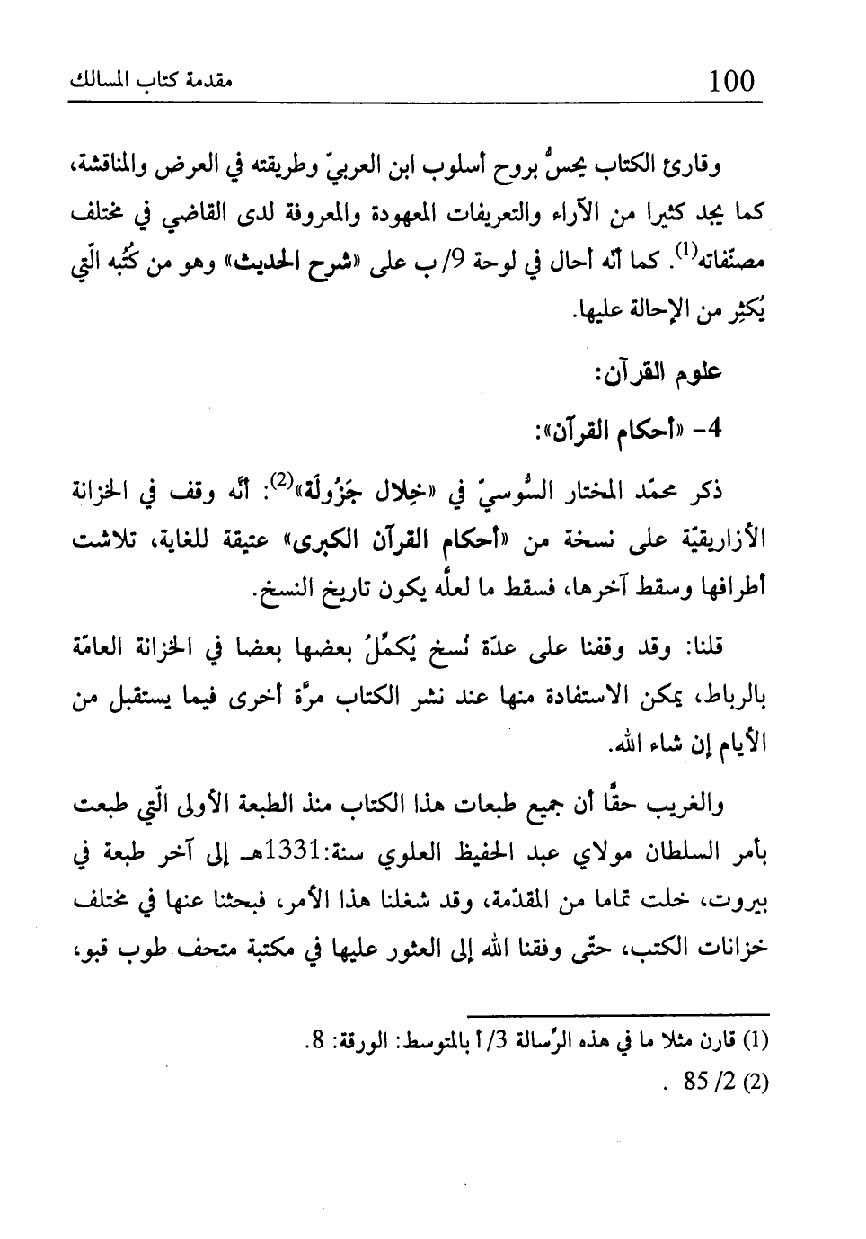 والغريب حقَّا أن جميع طبعات هذا الكتاب منذ الطبعة الأولى الّتي طبعت بأمر السلطان مولاي عبد الحفيظ العلوي سنة:1331 هـ إلى آخر طبعة في بيروت، خلت تماما من المقدّمة، وقد شغلنا هذا الأمر، فبحثنا عنها في مختلف خزانات الكتب، حتّى وفقنا الله إلى العثور عليها في مكتبة متحف طوب قبو،