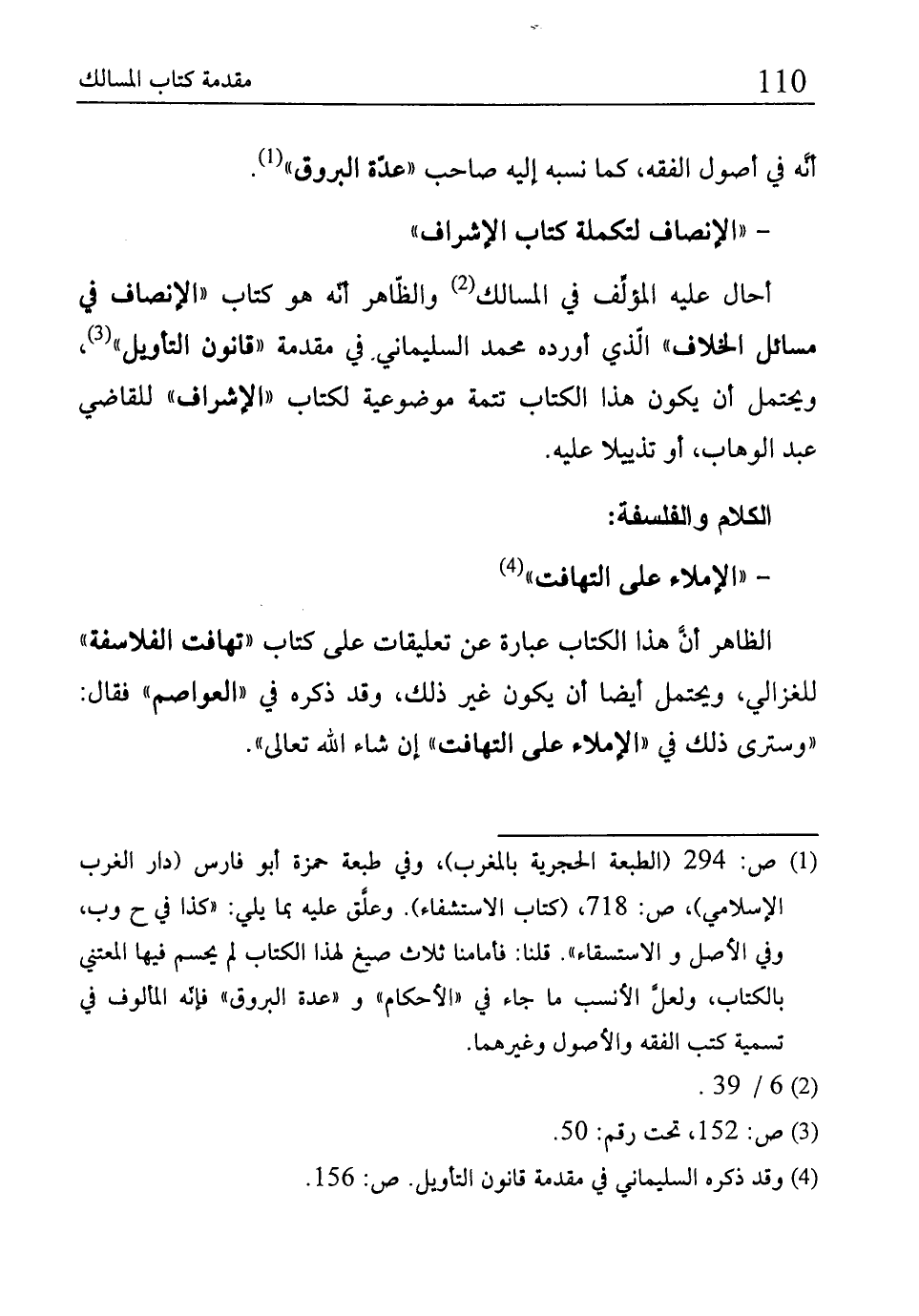 (¬1) ص: 294 (الطبعة الحجرية بالمغرب)، وفي طبعة حمزة أبو فارس (دار الغرب الإِسلامي)، ص: 718، (كتاب الاستشفاء). وعلَّق عليه كما يلي: "كذا في ح وب، وفي الأصل والاستسقاء". قلنا: فأمامنا ثلاث صيغ لهذا الكتاب لم يحسم فيها المعتني بالكتاب، ولعلَّ الإنسب ما جاءفي "الأحكام" و"عدة البروق " فإنّه المألوف في تسمية كتب الفقه والأصول وغيرهما.