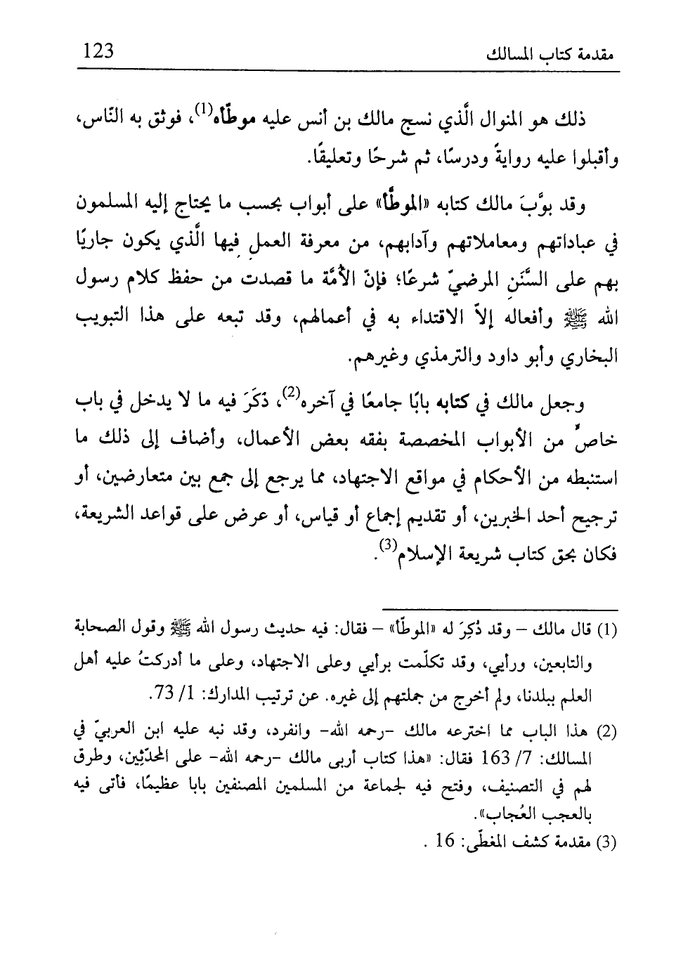 (¬1) قال مالك- وقد ذكِرَ له "الموطَّأ"- فقال: فيه حديث رسول الله - صلى الله عليه وسلم - وقول الصحابة والتابعين، ورأيى، وقد تكلّمت برأي وعلى الاجتهاد، وعلى ما أدركتُ عليه أهل العلم ببلدنالأولم أخرج من جملتهم إلا غيره. عن ترتيب الدارك: 1/ 73.