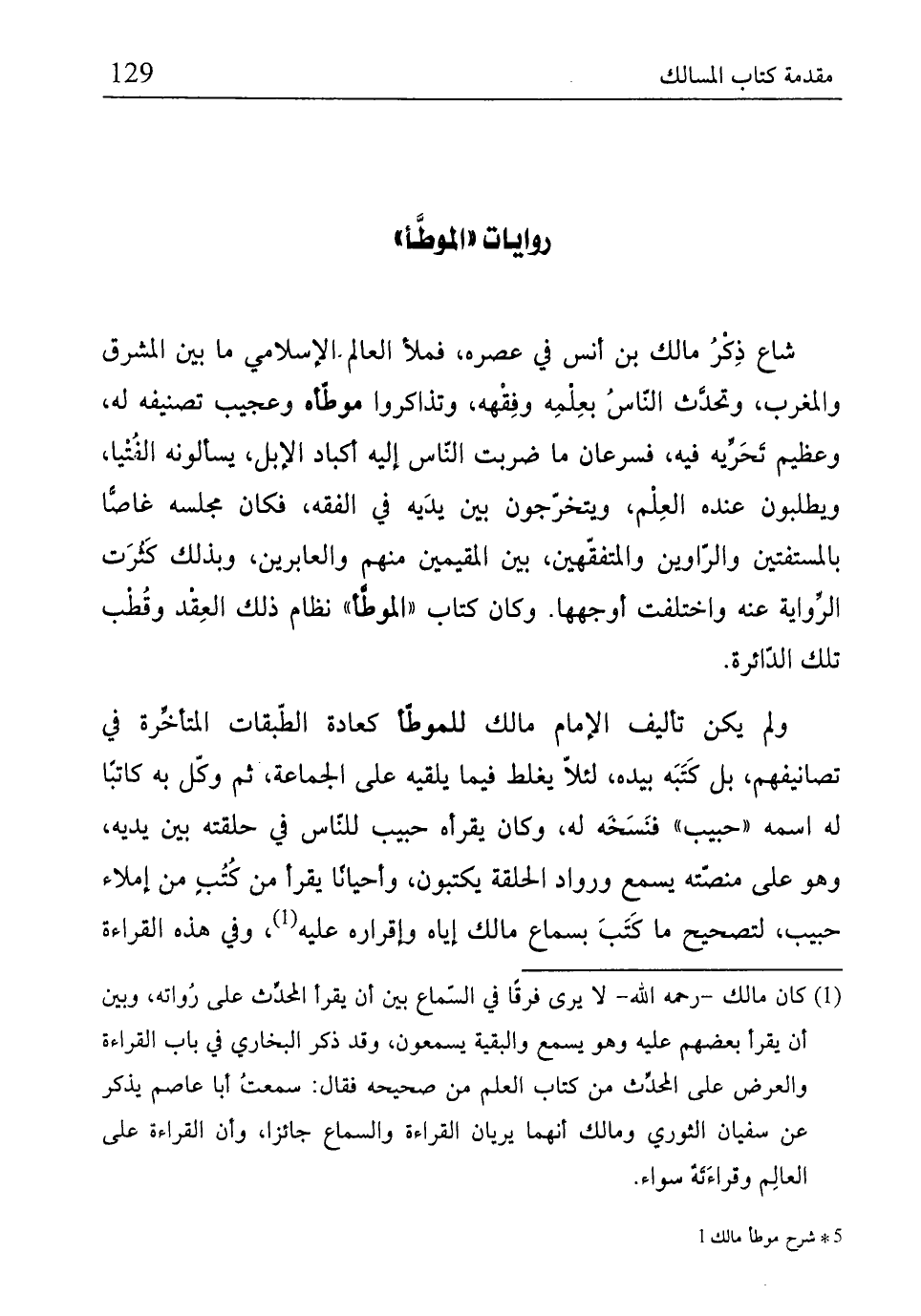 (¬1) كان مالك - رحمه الله - لا يرى فوقًا في السّماع بين أن يقرأ المحدِّث على رُواته، وبين أن يقرأ بعضهم عليه وهو يسمع والبقية يسمعون، وقد ذكر البخاري في باب القراءة والعرض على المحدِّث من كتاب العلم من صحيحه فقال: سمعتُ أبا عاصم يذكر عن سفيان الثوري ومالك أنهما يربان القراءة والسماع جائزا، وأن القراءة على العالِم وقراءَتَة سواء.