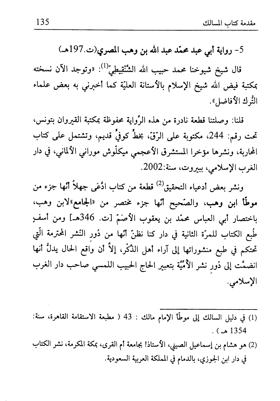 ونشر بعض أدعياء التحقيق (¬2) قطعة من كتاب ادَّعى جهلًا أنّها جزء من موطّأ ابن وهب، والصّحيح أنّها جزء مختصر من "الجامع" لابن وهب، باختصار أبي العباس محمّد بن يعقوب الأصَمّ [ت. 346 هـ] ومن أسفٍ طُبع الكتاب للمرّة الثانية في دار كنا نظنّ أنها من دُورِ النّشر المحترمة الَّتي تحتكم في طبع منشورائها إلى آراء أهل الذِّكْر، إلَّا أن واقع الحال يدلُّ أنها انضمُّت إلى دُورِ نشر الأُمِّيَّة بتعبير الحاج الحبيب اللمسي صاحب دار الغرب الإِسلامي.