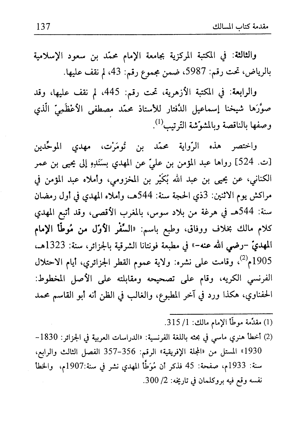(¬2) أخطأ هنري ماسي في بحثه باللغة الفرنسية: "الدراسات العربية في الجزائر:1830 -