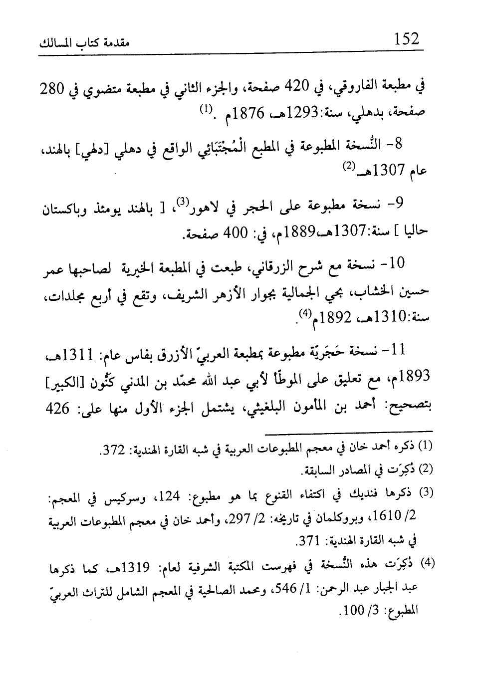 10 - نسخة مع شرح الزرقاني، طبعت في المطبعة الخيرية لصاحبها عمر حسين الخشاب، بحي الجمالية يحوار الأزهر الشريف، وتقع في أربع مجلدات، سنة: 1310هـ، 1892م (¬4).
