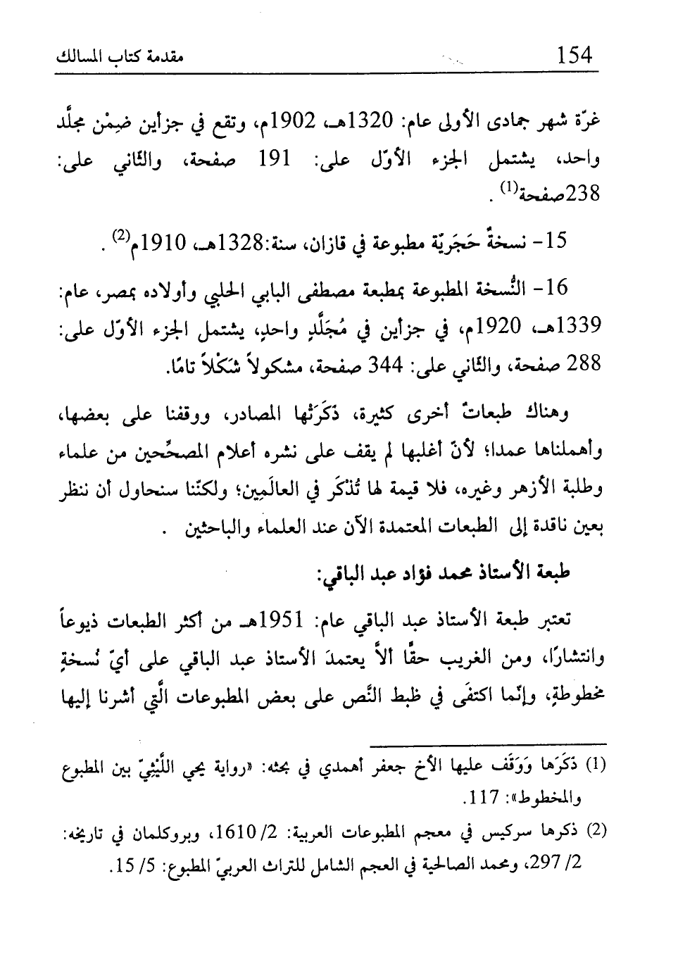 16 - النُّسخة المطبوعة بمطبعة مصطفى البابي الحلبي وأولاده بمصر، عام: 1329هـ،1920م، في جزأين في مُجَلَّدٍ واحدٍ، يشتمل الجزء الأوّل على: 288 صفحة، والثّاني على: 344 صفحة، مشكولًا شَكْلًا تامًا.