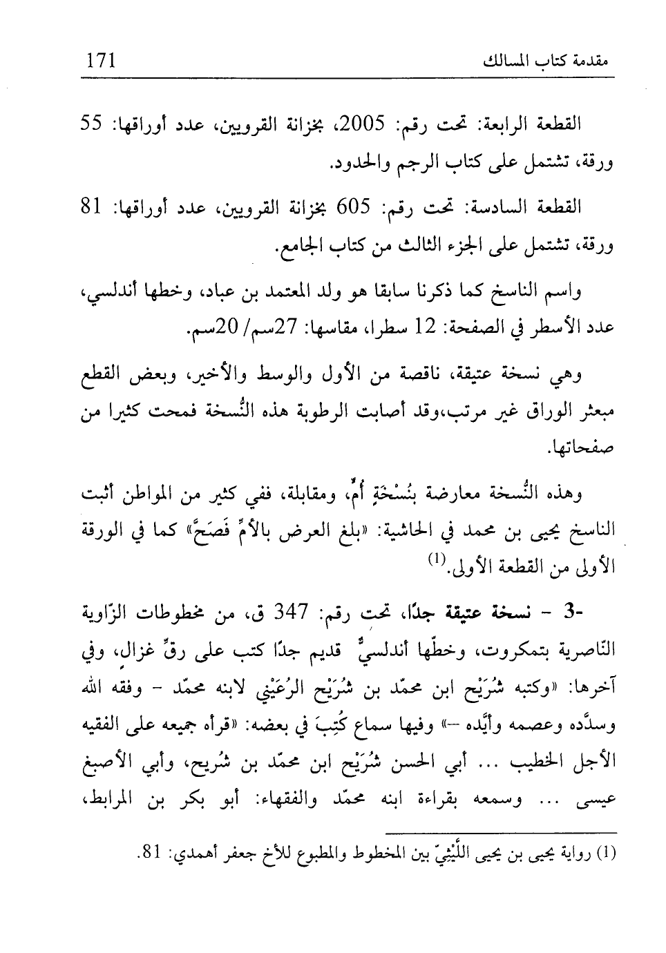 (¬1) رواية يحيى بن يحيى اللَّيْثِيّ بين المخطوط والمطبوع للأخ جعفر أهمدي: 81.