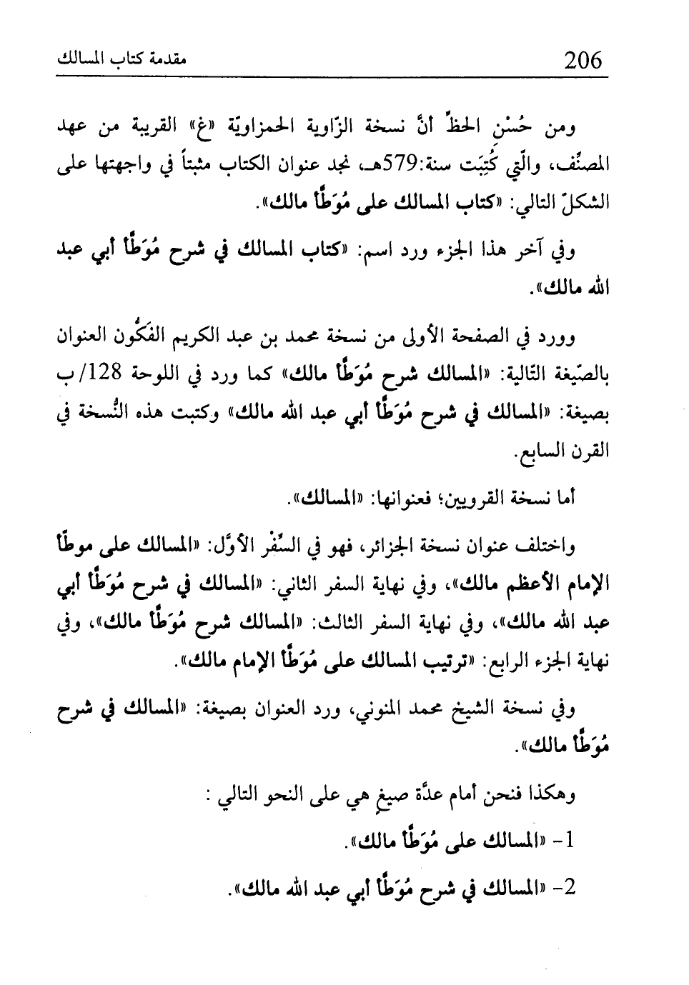 وفي نسخة الشيخ محمَّد المنوني، ورد العنوان بصيغة: "المسالك في شرح مُوَطَّأ مالك".