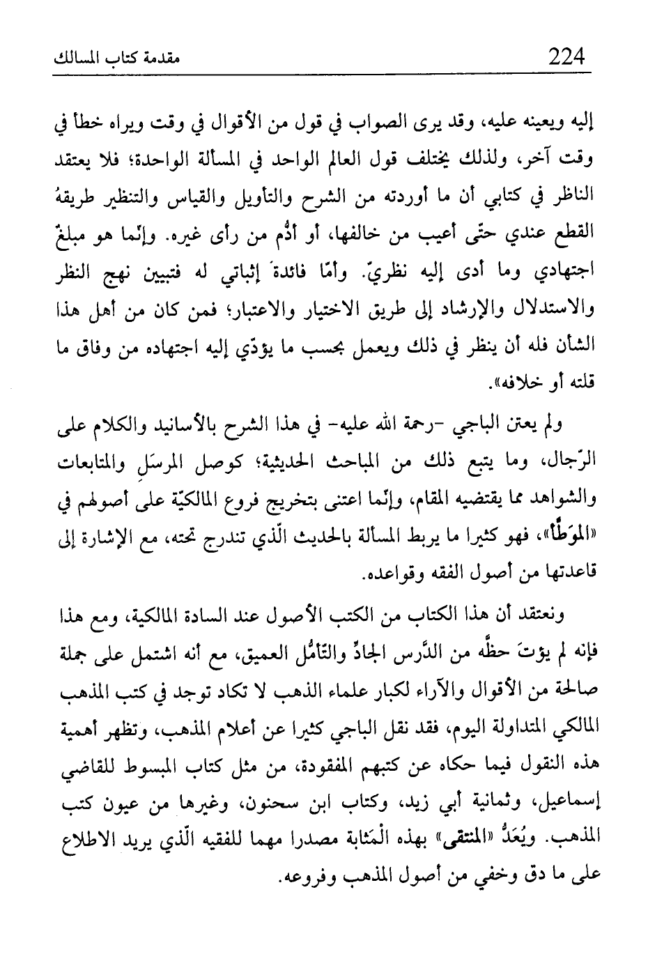 إليه ويعينه عليه، وقد يرى الصواب في قول من الأقوال في وقت ويراه خطأ في وقت آخر، ولذلك يختلف قول العالم الواحد في المسألة الواحدة؛ فلا يعتقد الناظر في كتابي أن ما أوردته من الشرح والتأويل والقياس والتنظير طريقهُ القطع عندي حتّى أعيب من خالفها، أو أدُّم من رأى غيره. وإنما هو مبلغ اجتهادي وما أدى إليه نظري. وأمّا فائدة إثبات أنه فتبيين نهج النظر والاستدلال والإرشاد إلى طريق الاختيار والاعتبار؛ فمن كان من أهل هذا الشأن فله أن ينظر في ذلك ويعمل بحسب ما يؤدي إليه اجتهاده من وفاق ما قلته أو خلافه".