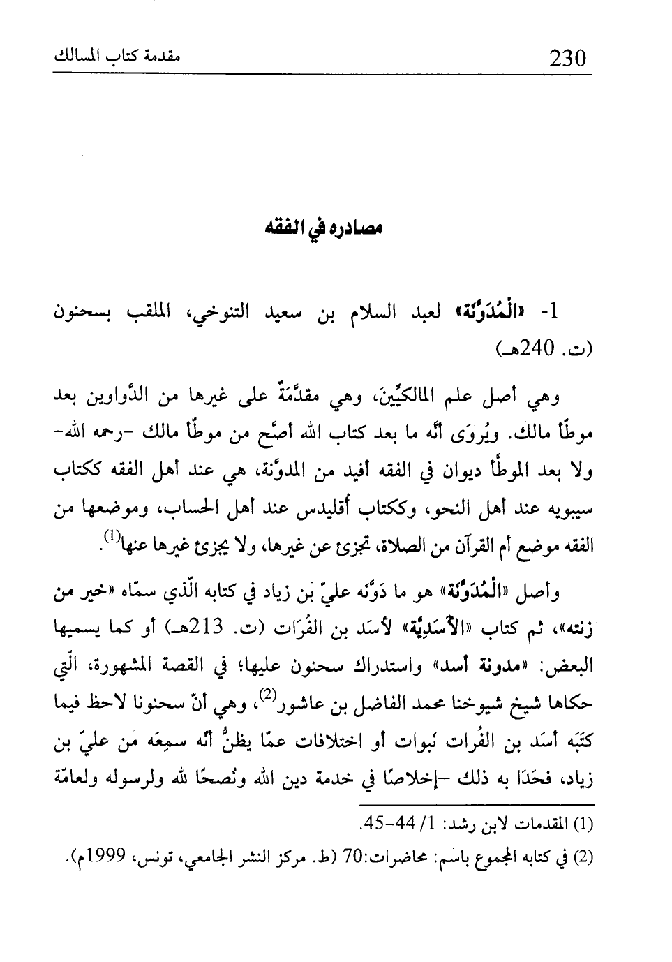 1 - " الْمُدَوَّنَة" لعبد السلام بن سعيد التنوخي، اللقب بسحنون (ت.240 هـ)