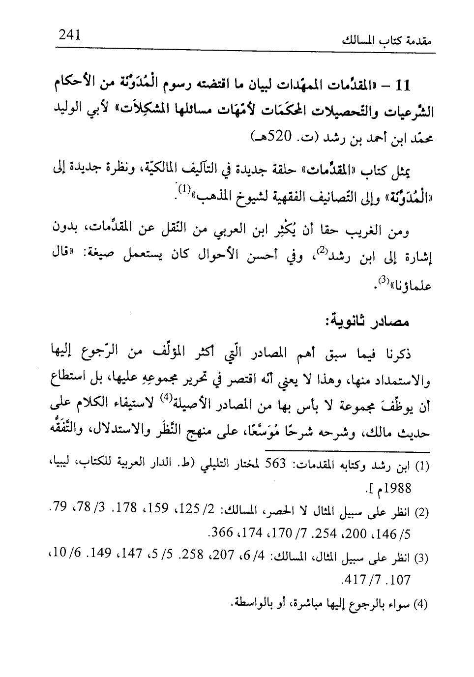 (¬1) ابن رشد وكتابه المقدمات: 563 لختار التليلي (ط. الدار العربية للكتاب، ليبيا، 1998م].