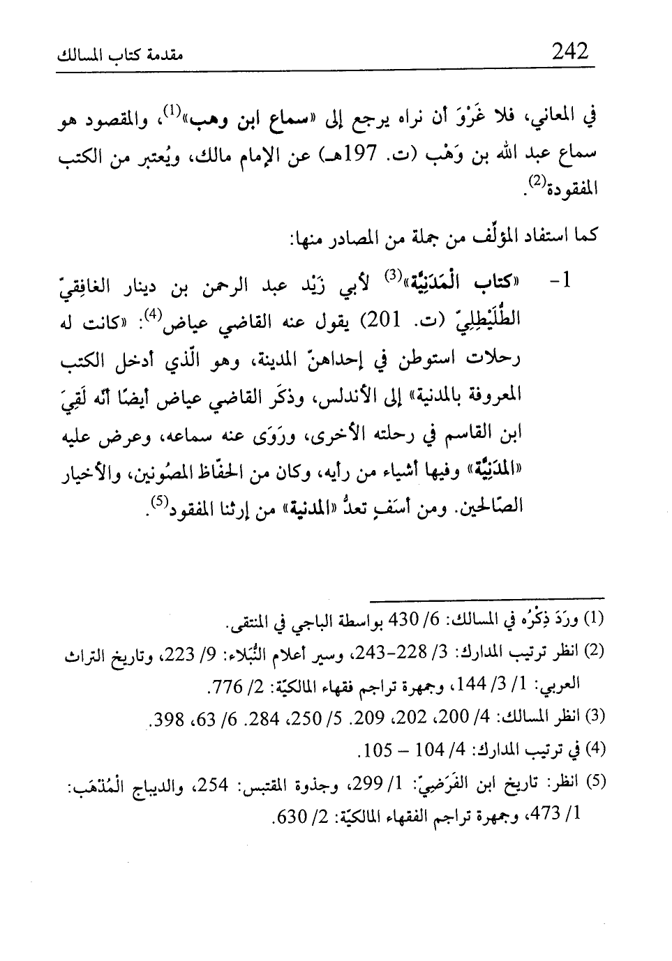 (¬2) انظر ترتيب المدارك: 3/ 228 - 243، وسير أعلام النُّبَلاء: 9/ 223، وتاريخ التراث العربيّ: 1/ 3/ 144، وجمهرة تراجم فقهاء المالكيّة: 2/ 776.