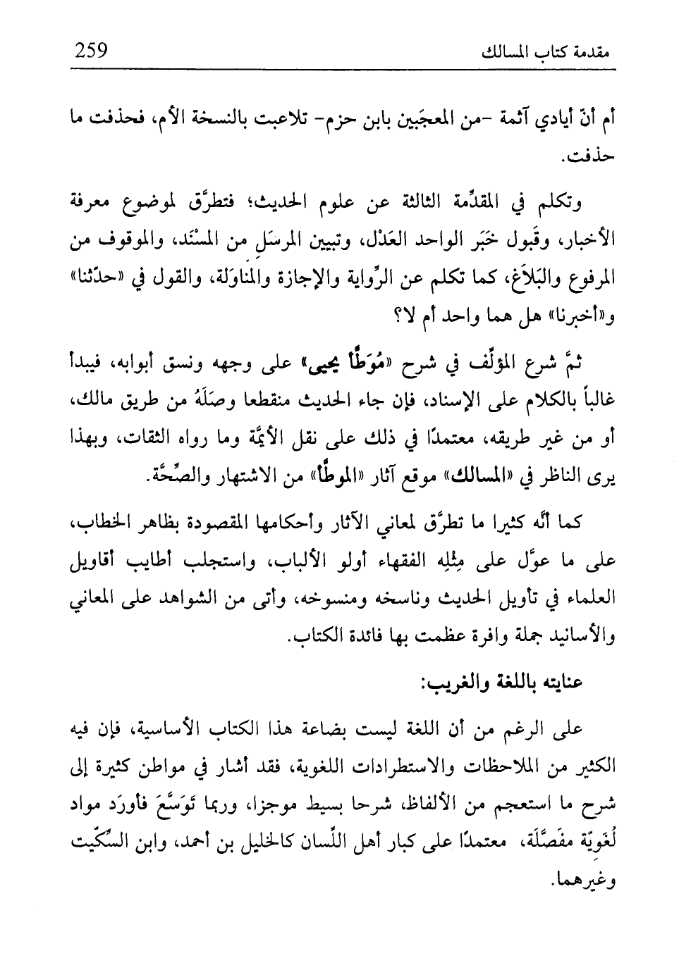 ثمَّ شرع المؤلِّف في شرح "مُوَطَّأ يحيى" على وجهه ونسق أبوابه، فيبدأ غالبًا بالكلام على الإسناد، فإن جاء الحديث منقطعا وصَلَهُ من طريق مالك، أو من غير طريقه، معتمدًا في ذلك على نقل الأيمُّة وما رواه الثقات، وبهذا يرى الناظر في "المسالك" موقع آثار "الموطَّأ" من الاشتهار والصِّحَّة.