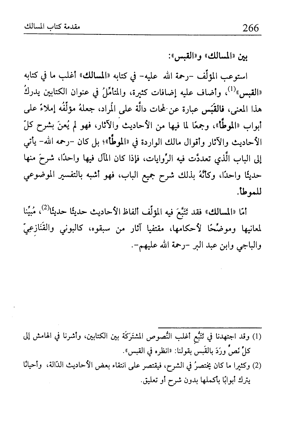 (¬1) وقد اجتهدنا في تَتَبُّع أغلب النُّصوص المشتَرَكَة بين الكتابين، وأشرنا في الهامش إلى كلِّ نَصٍّ ورَدَ بالقَبس بقولنا: "انظره في القبس".