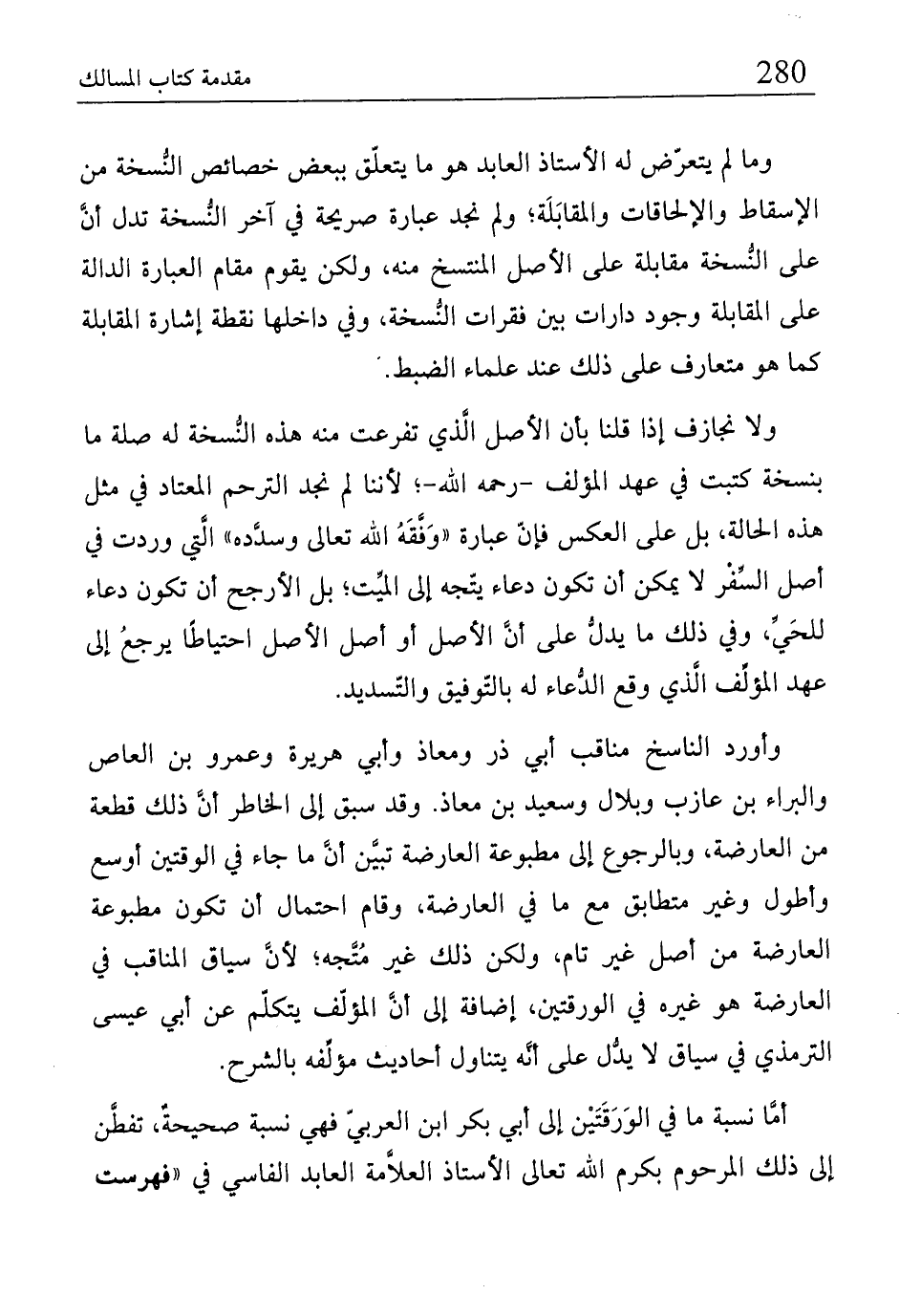 وأورد الناسخ مناقب أبي ذر ومعاذ وأبي هريرة وعمرو بن العاص والبراء بن عازب وبلال وسعيد بن معاذ. وقد سبق إلى المخاطر أنَّ ذلك قطعة من العارضة، وبالرجوع إلى مطبوعة العارضة تبيَّن أنَّ ما جاء في الوقتين أوسع وأطول وغير متطابق مع ما في العارضة، وقام احتمال أنّ تكون مطبوعة العارضة من أصل غير تام، ولكن ذلك غير مُتَّجه؛ لأنَّ سياق المناقب في العارضة هو غيره في الورقتين، إضافة إلى أنَّ المؤلِّف يتكلّم عن أبي عيسى الترمذي في سياق لا يدُّل على أنَّه يتناول أحاديث مؤلِّفه بالشرح.