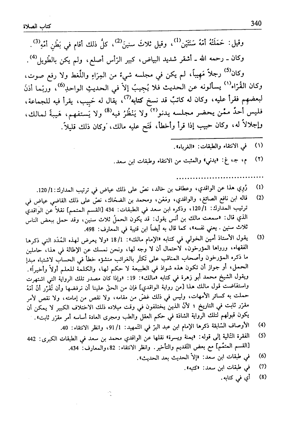 (¬1) رُوِي هذا عن الواقدي، وعطاف بن خالد، نصّ على ذلك عياض في ترتيب المدارك؛ 1/ 120.