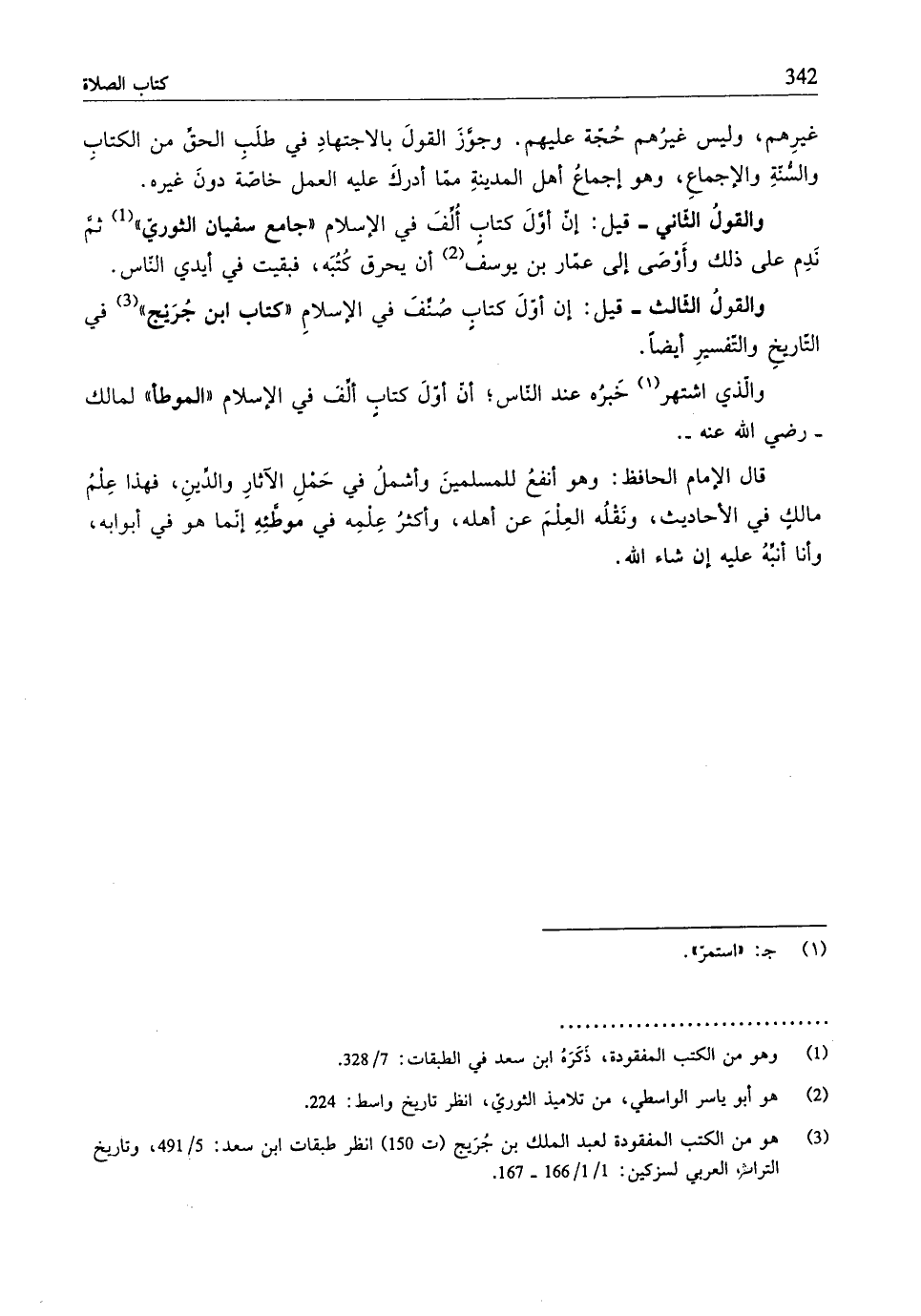 والقولُ الثّالث - قيل: إن أوَّلَ كتابٍ صُنِّفَ في الإِسلامِ "كتاب ابن جُرَيْج" (¬3) في التّاريخِ والتّفسيرِ أيضًا.