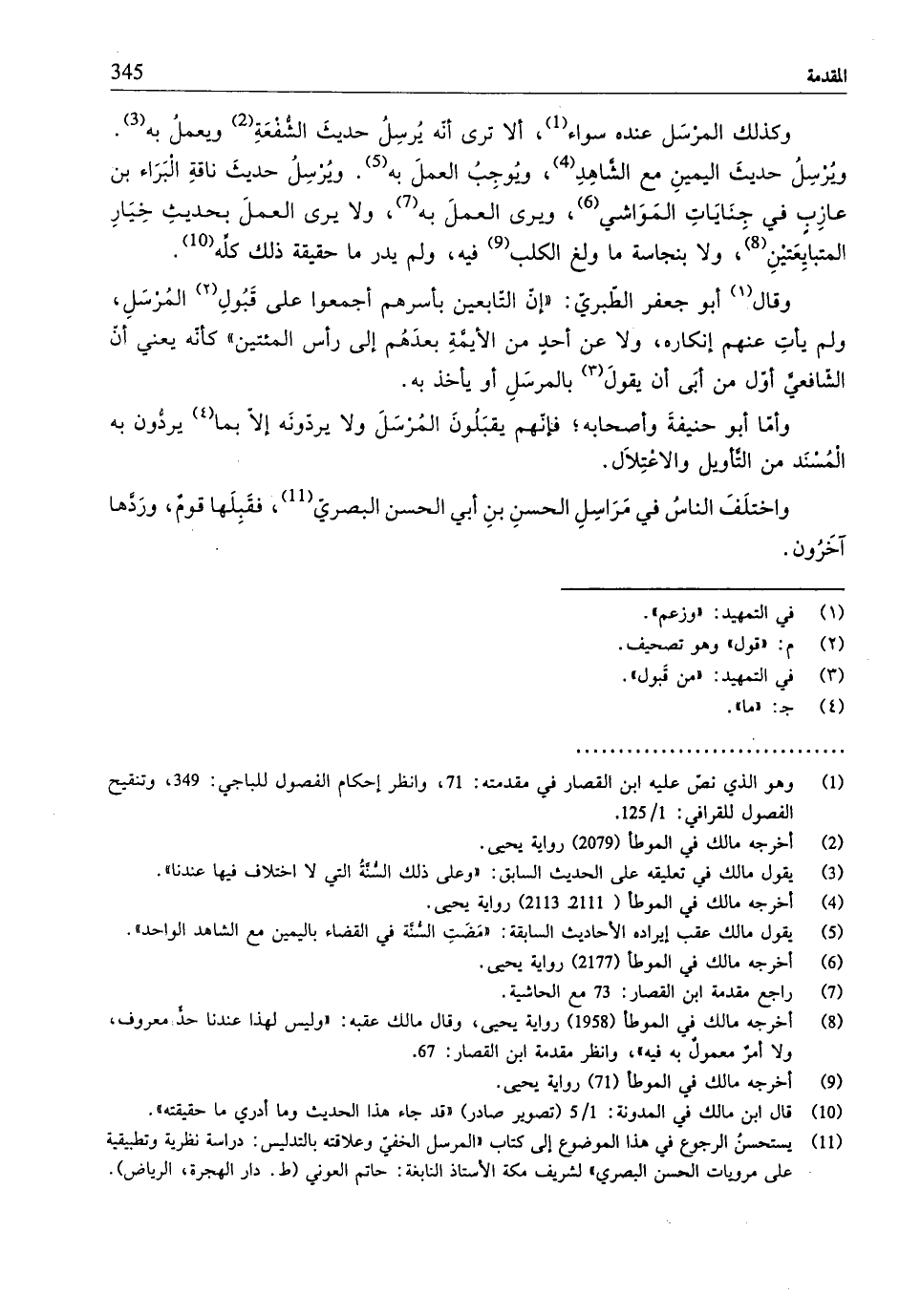(¬11) يستحسنُ الرجوع في هذا الموضوع إلى كتاب "المرسل الخفيّ وعلاقته بالتدليس: دراسة نظرية وتطبيقية على مرويات الحسن البصري" لشريف مكة الأستاذ النابغة: حاتم العوني (ط. دار الهجرة، الرياض).