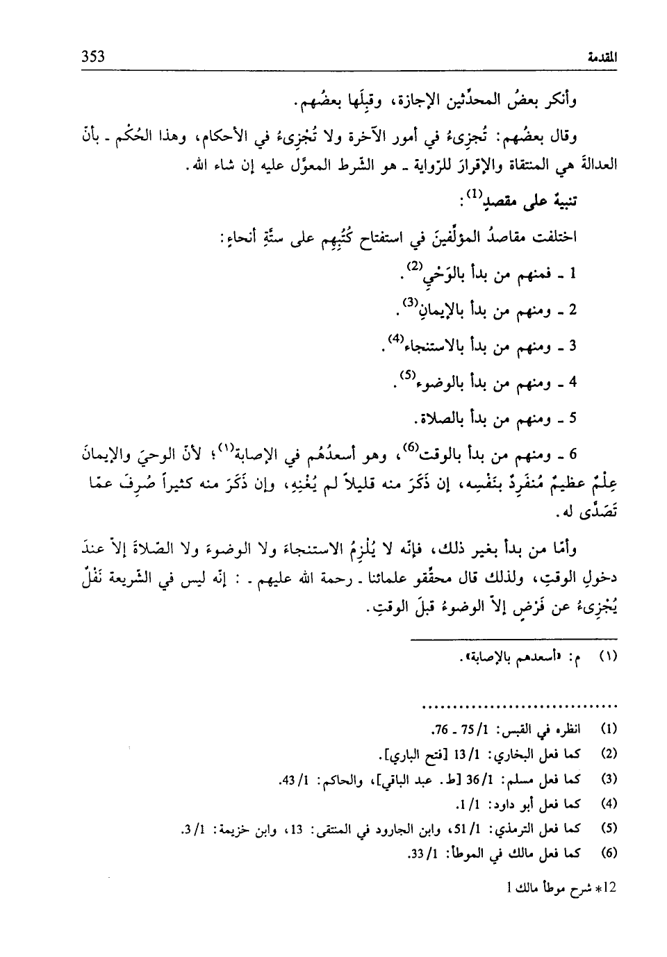 (¬6) كما فعل مالك في الموطأ: 1/ 33