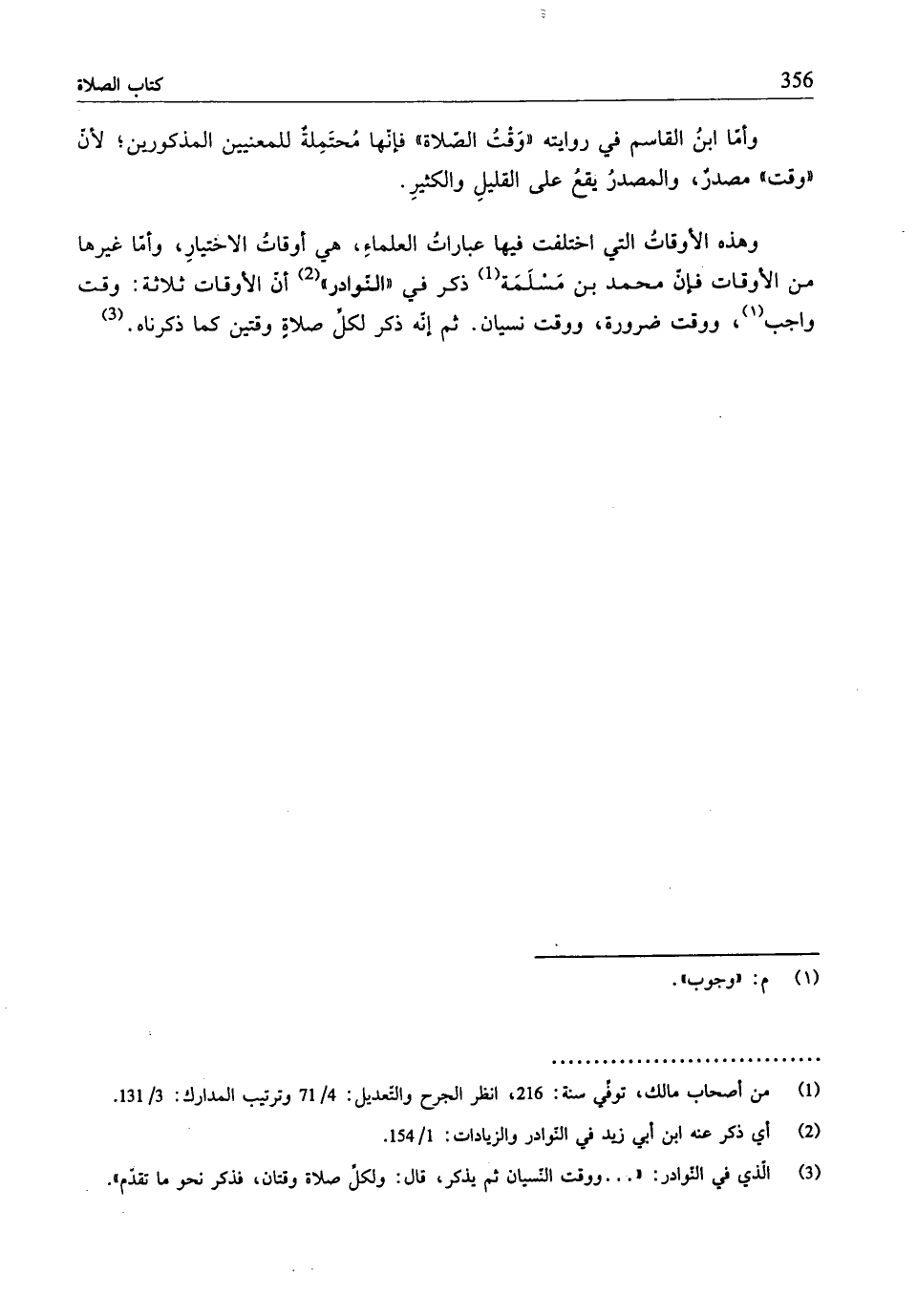 (¬3) الّذي في النّوادر: (... ووقت النّسيان ثم يذكر، قال: ولكلِّ صلاة وقتان، فذكر نحو ما تقدّم".