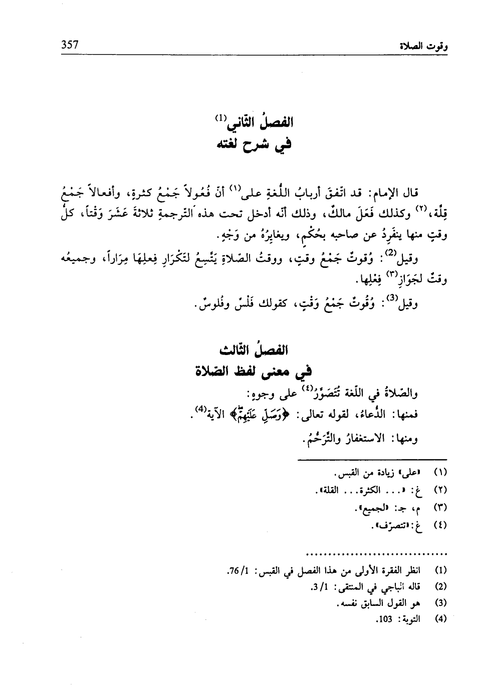 الفصلُ الثّالث في معنى لفظ الصّلاة
