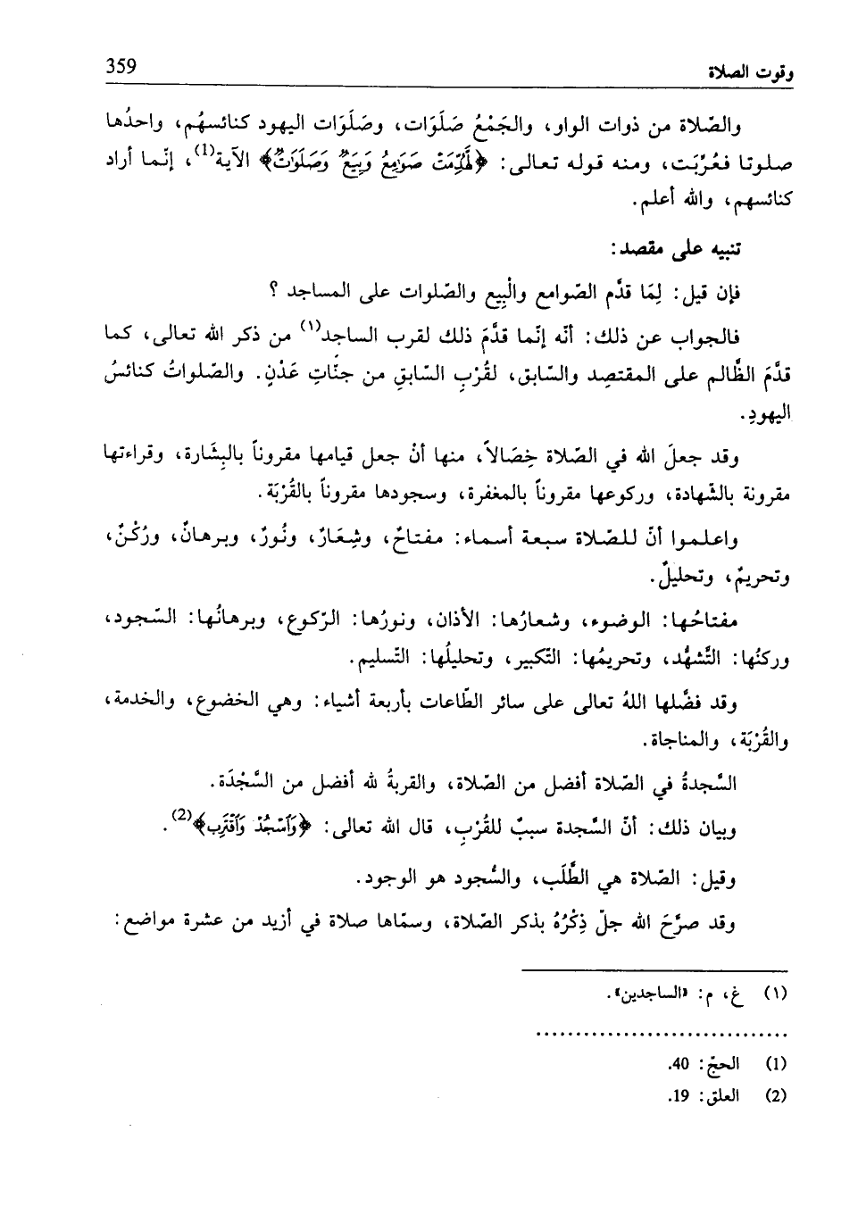 فإن قيل: لِمَا قدّم الصّوامع والْبِيع والصّلوات على المساجد؟