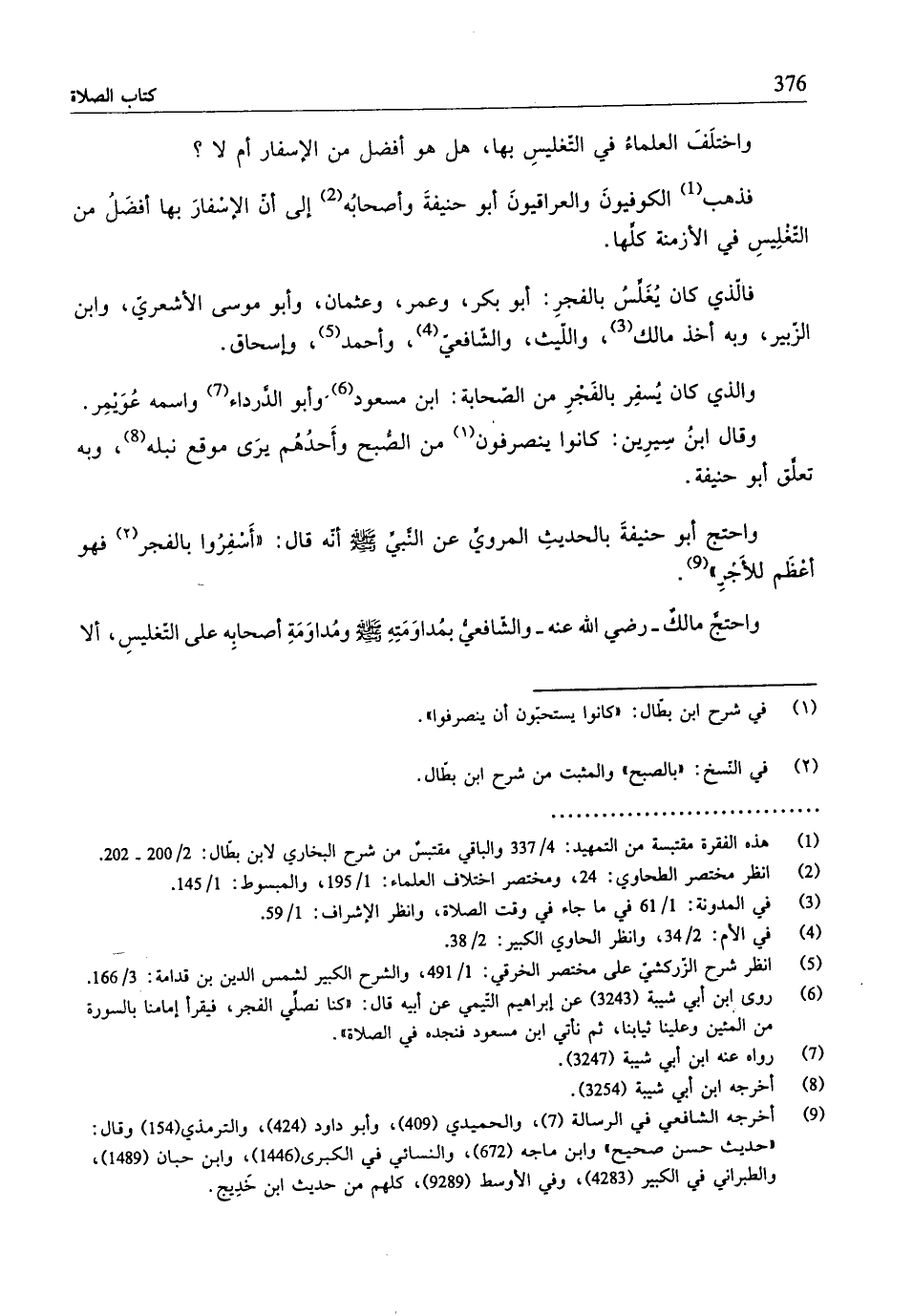 فذهب (¬1) الكوفيونَ والعراقيونَ أبو حنيفةَ وأصحابُه (¬2) إلى أنّ الإسْفارَ بها أفضَلُ من التغْلِيسِ في الأزمنة كلِّها.