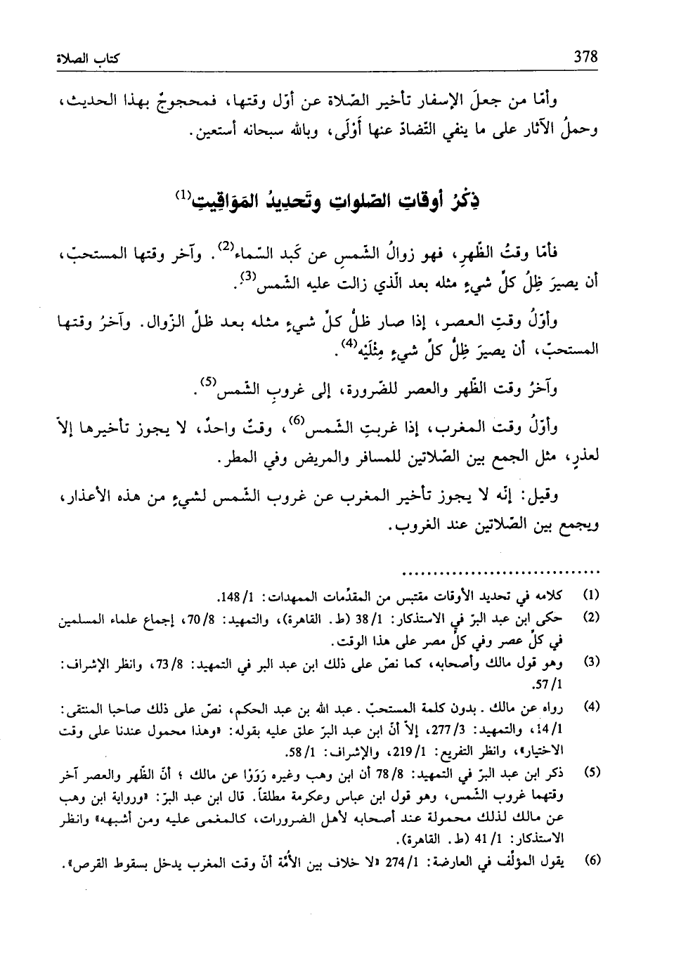 (¬2) حكى ابن عبد البرّ في الاستذكار: 1/ 38 (ط. القاهرة)، والتمهيد: 8/ 70، إجماع علماء المسلمين في كلِّ عصر وفي كلِّ مصر على هذا الوقت.