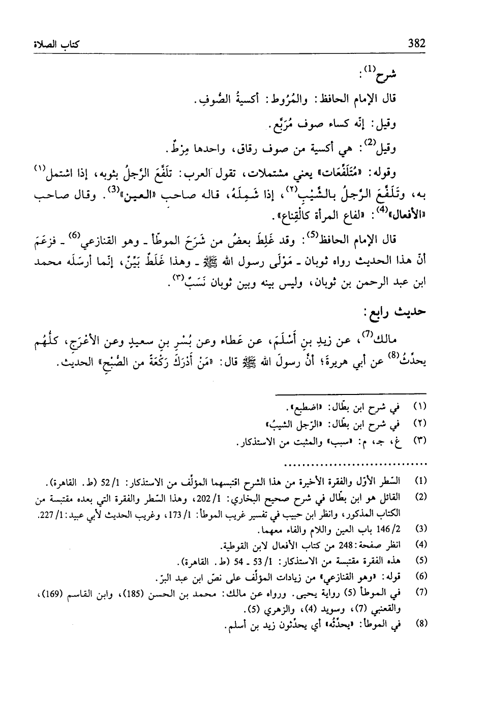 (¬1) السّطر الأوّل والفقرة الأخيرة من هذا الشرح اقتبسهما المؤلِّف من الاستذكار: 1/ 52 (ط. القاهرة).