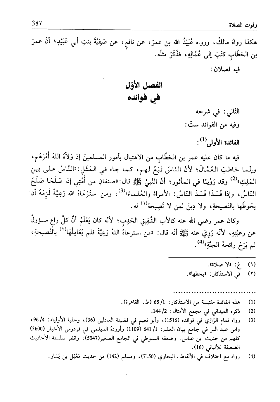 (¬1) هذه الفائدة مقتبسة من الاستذكار: 1/ 65 (ط. القاهرة).