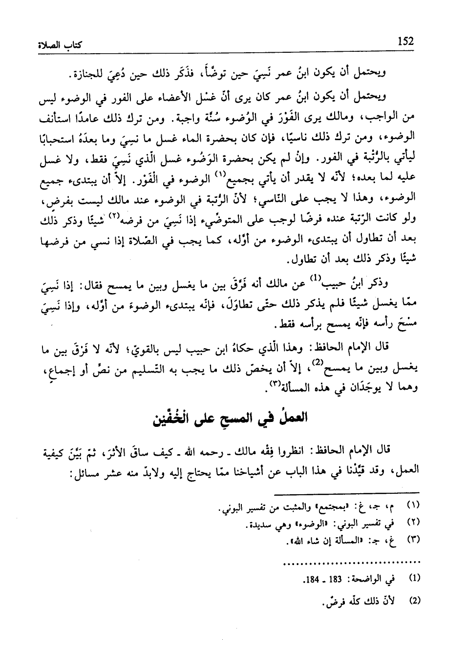 قال الإمام الحافظ: وهذا الّذي حكاهُ ابن حبيب ليس بالقويّ؛ لأنّه لا فَرقَ بين ما يغسل وبين ما يمسح (¬2)، إلَّا أن يخصّ ذلك ما يجب به التّسليم من نصِّ أو إجماعٍ، وهما لا يوجَدَان في هذه المسألة.