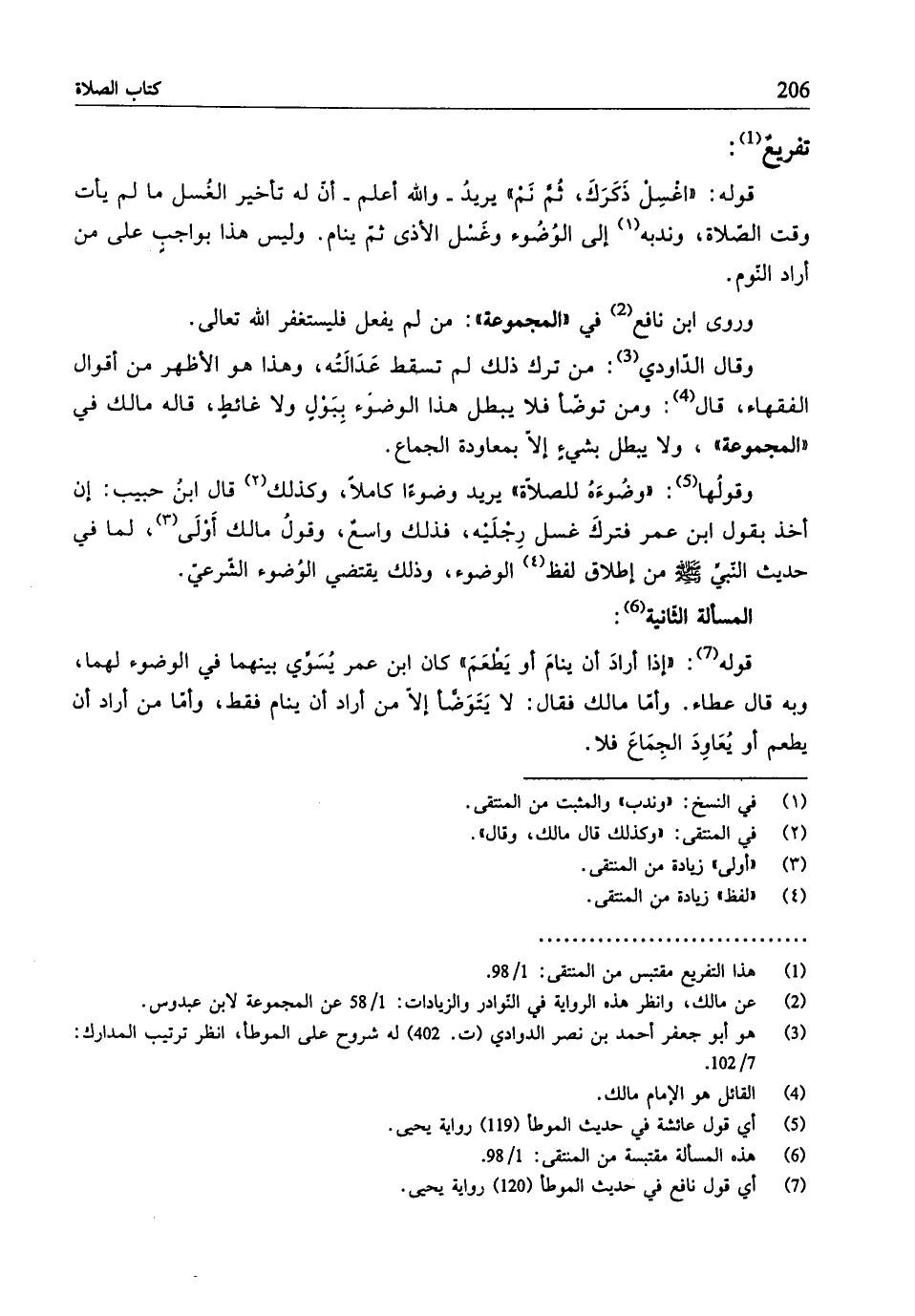 (¬1) هذا التفريع مقتبس من المنتقي: 1/ 98.
