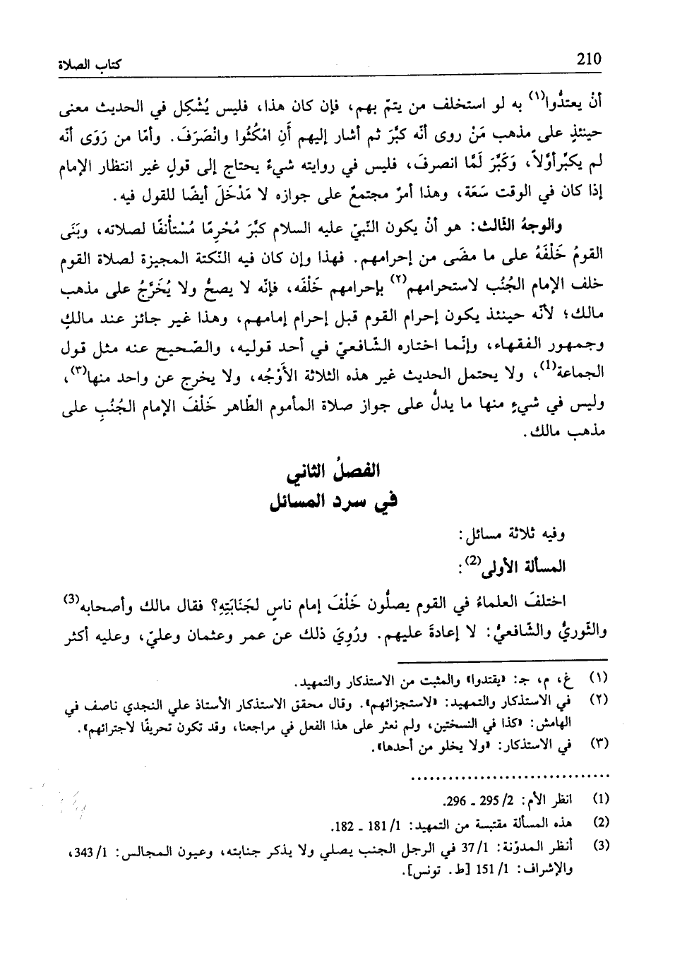 (¬3) انظر المدوْنة: 1/ 37 في الرَّجل الجنب يصلي ولا يذكر جنابته، وعيون المجالس: 1/ 343، والإشراف: 1/ 151 [ط. تونس].