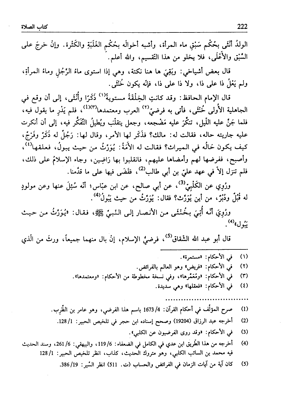(¬3) في الأحكام: "وقد روى الفرضيون عن الكلبي".