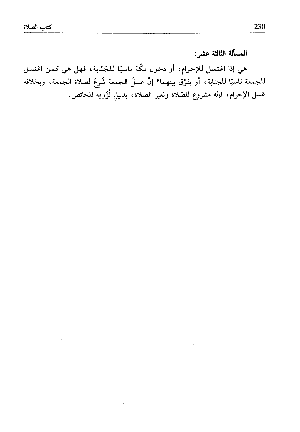 هي إذا اغتسل للإحرام، أو دخول مكَّة ناسيًا للجَنَابة، فهل هي كمن اغتسل للجمعة ناسيًا للجنابة، أو يفرَّق بينهما؟ إنَّ غسلَ الجمعة شُرِعَ لصلاة الجمعة، وبخلافه غسل الإحرام، فإنّه مشروع للصّلاة ولغير الصّلاة، بدليلِ لُزُومِه للحائض.