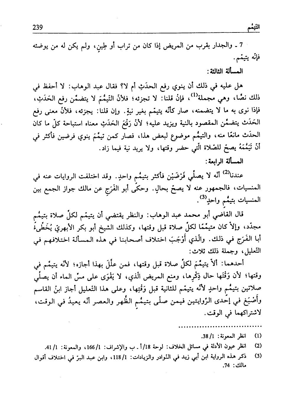 (¬2) انظر عيون الادلة في مسائل الخلاف: لوحة 18/أ. ب والإشراف: 1/ 166، والمعونة: 1/ 41.