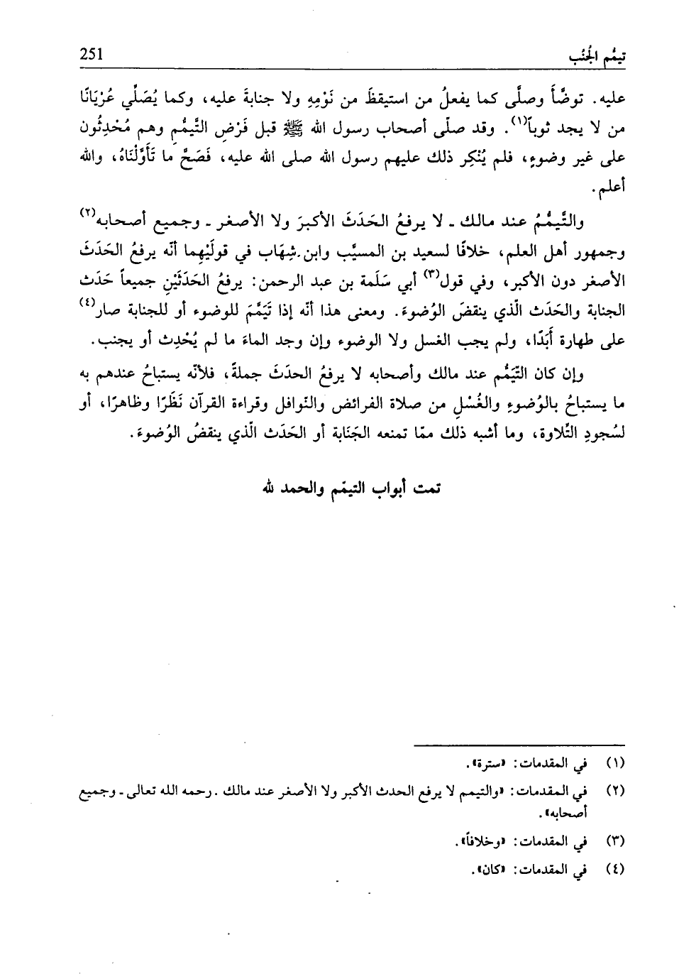 (¬2) في المقدِّمات: "والتيمُّم لا يرفع الحدث الأكبر ولا الأصغر عند مالك -رحمه الله تعالى- وجميع أصحابه".