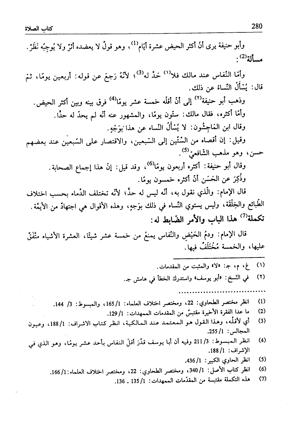 (¬4) انظر المبسوط: 3/ 211 وفيه أنّ أبا يوسف قدَّرَ أقلّ النفاس بأحد عشر يومًا، وهو الّذي في الإشراف: 1/ 188.