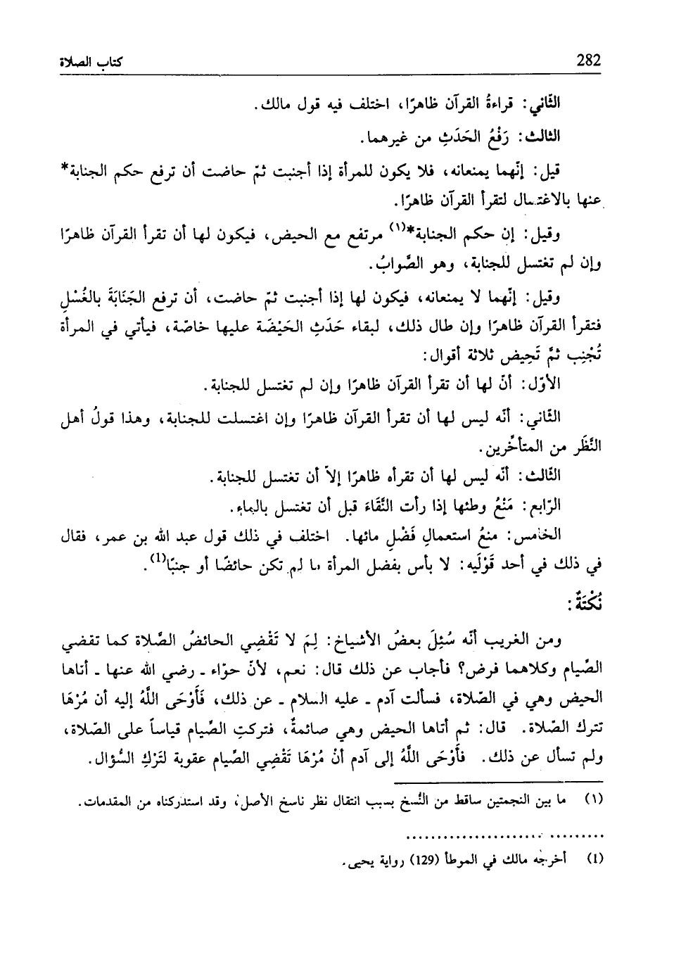 (¬1) أخرجه مالكٌ في الموطَّأ (129) رواية يحيى