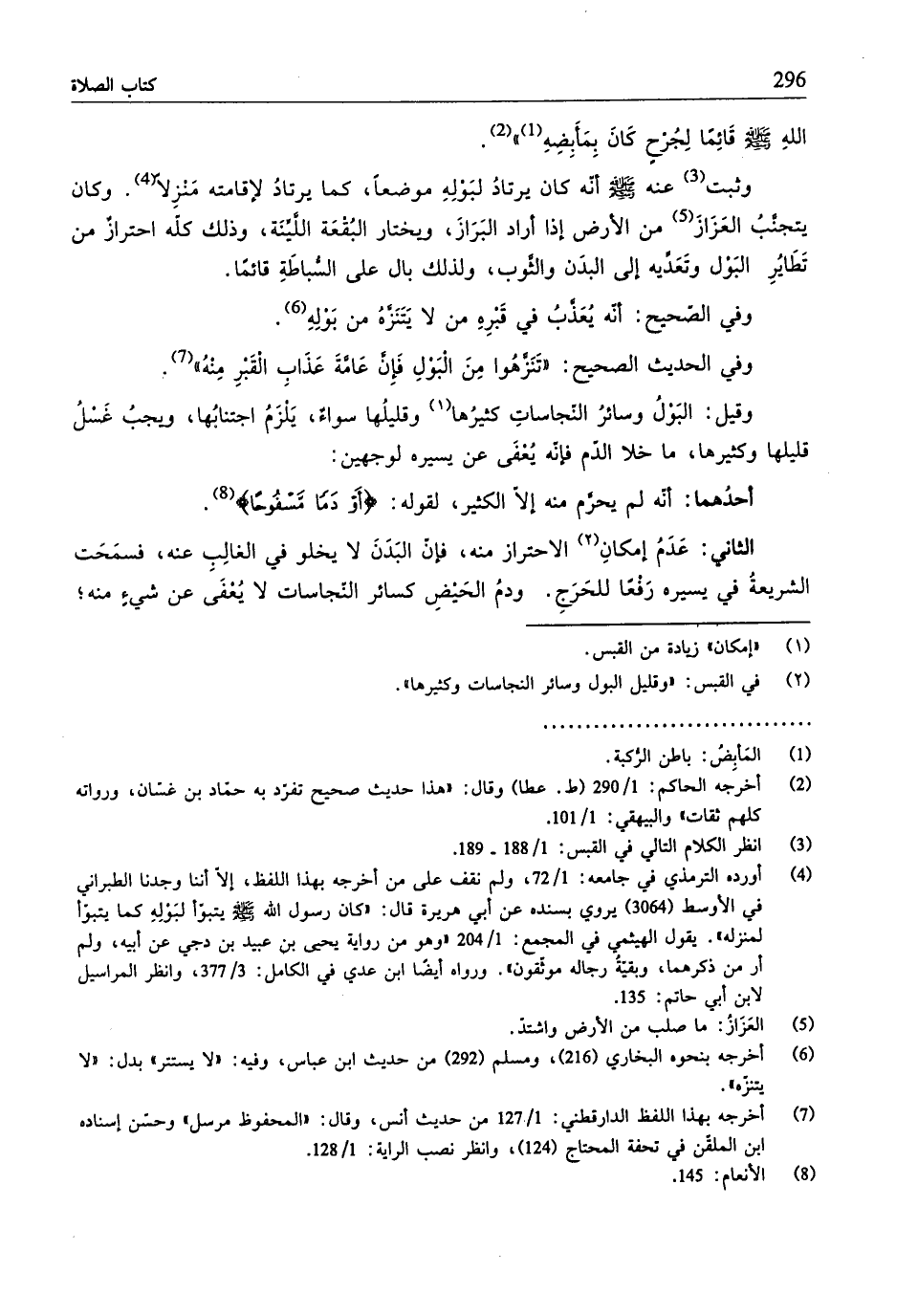 وفي الحديث الصّحيح: "تنَزَّهُوا مِنَ البَوْلِ فَإِنَّ عَامَّةَ عَذابِ الْقَبْرِ مِنْهُ" (¬7).