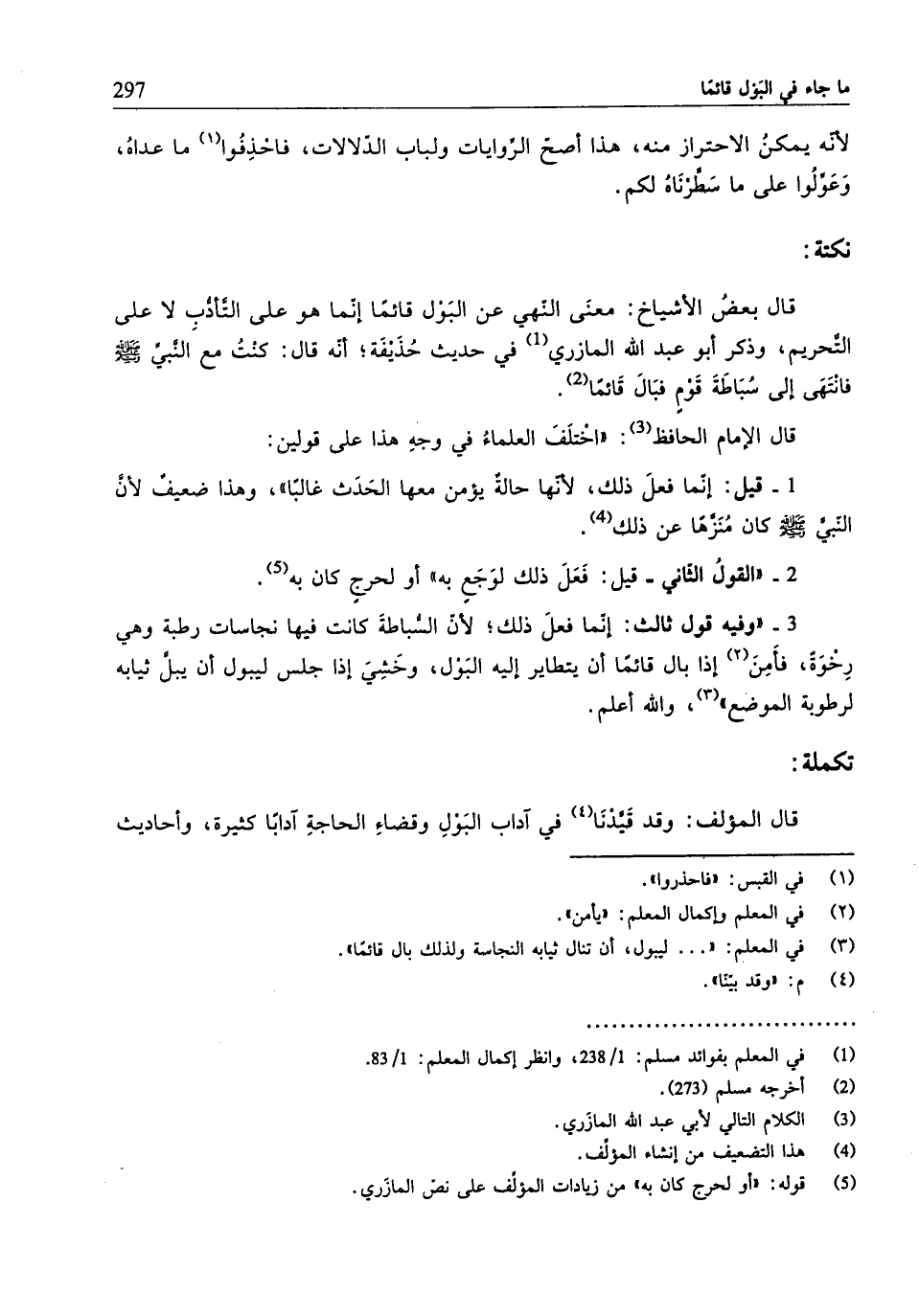 (¬1) في المعلم بفوائد مسلم: 1/ 238، وانظر إكمال المعلم: 1/ 83.